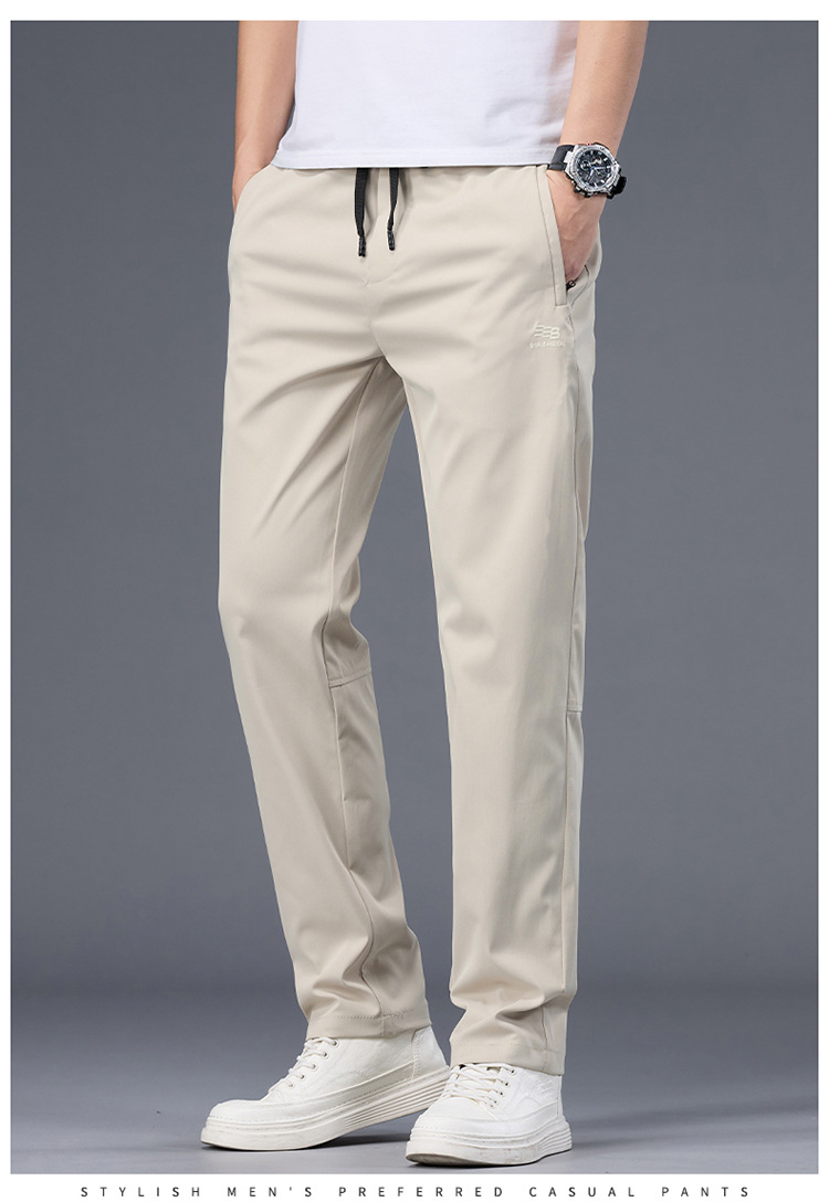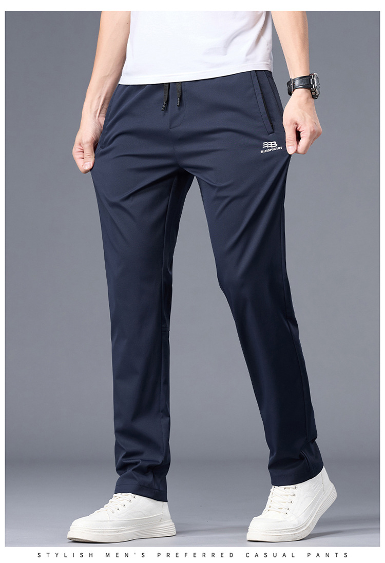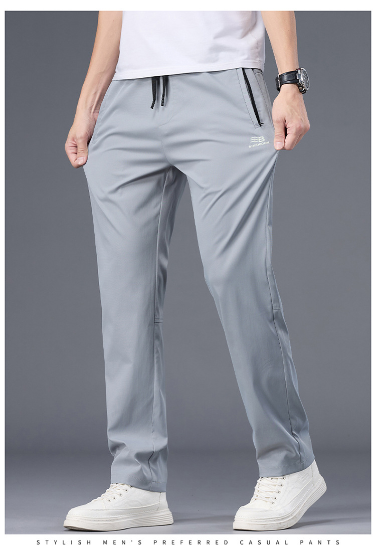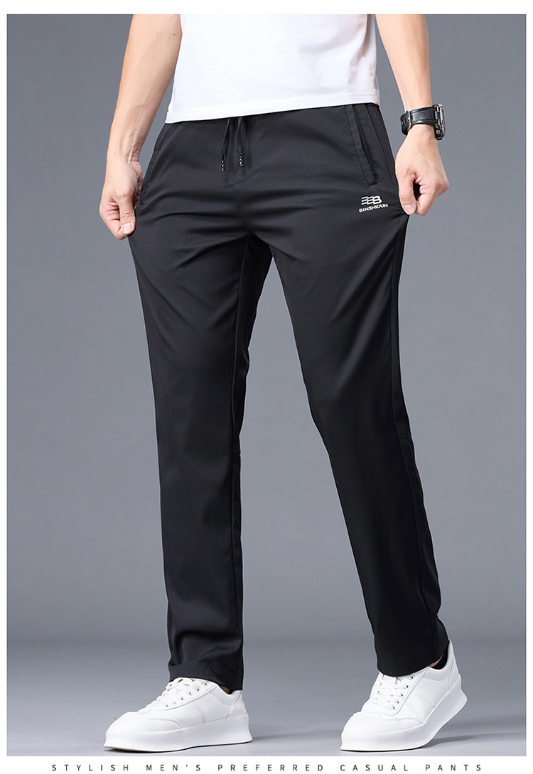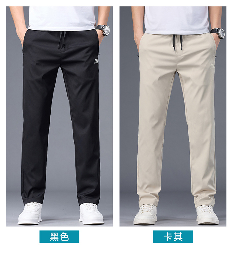 2025 새로운 여름 얇은 캐주얼 바지 남성용 트렌디 브랜드 느슨한 스트레이트 울트라 얇은 아이스 실크 엘라테 빠른 건조 긴 바지스토어 가기