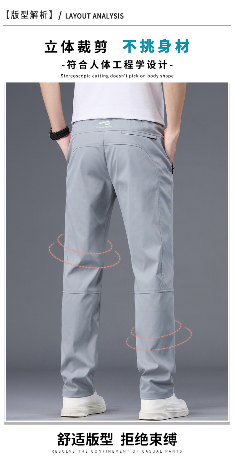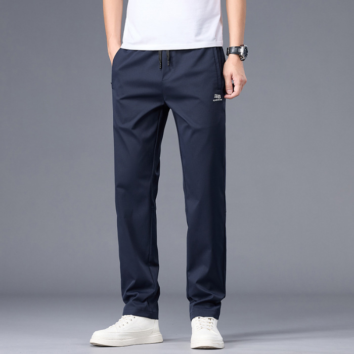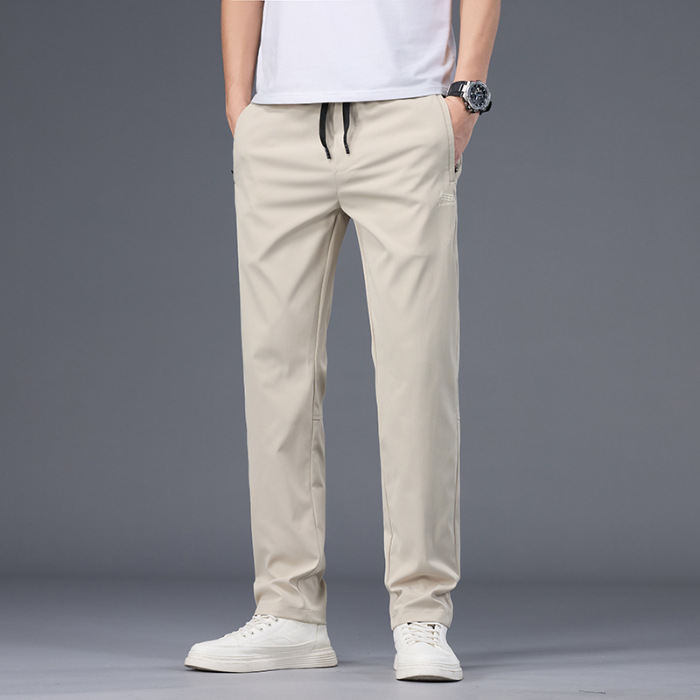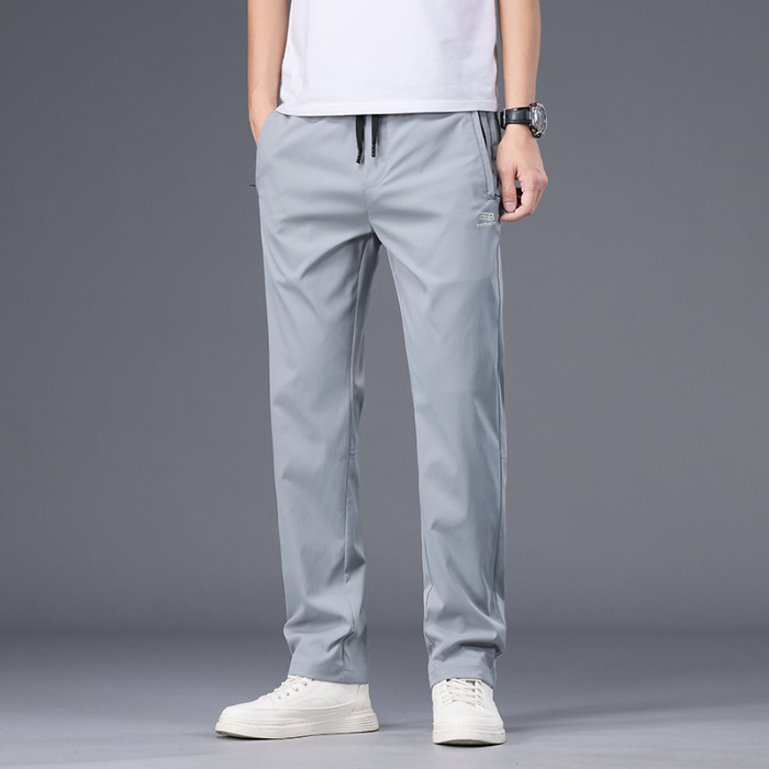 2025 새로운 여름 얇은 캐주얼 바지 남성용 트렌디 브랜드 느슨한 스트레이트 울트라 얇은 아이스 실크 엘라테 빠른 건조 긴 바지