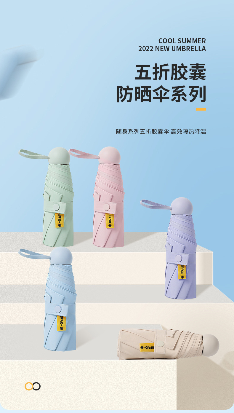 50% 접힌 써니 우산 도매 작은 휴대용 선 스크린 우산 여성 캡슐 우산 UV 보호 햇살 미니 우산