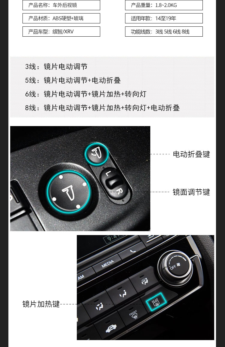 Honda Binzhi XRV Xuanwei 백미러 어셈블리 14 ~ 22 년 왼쪽 및 오른쪽 반전 미러 어셈블리에 적합