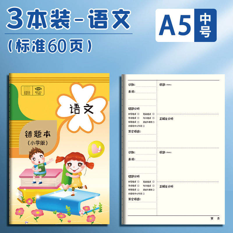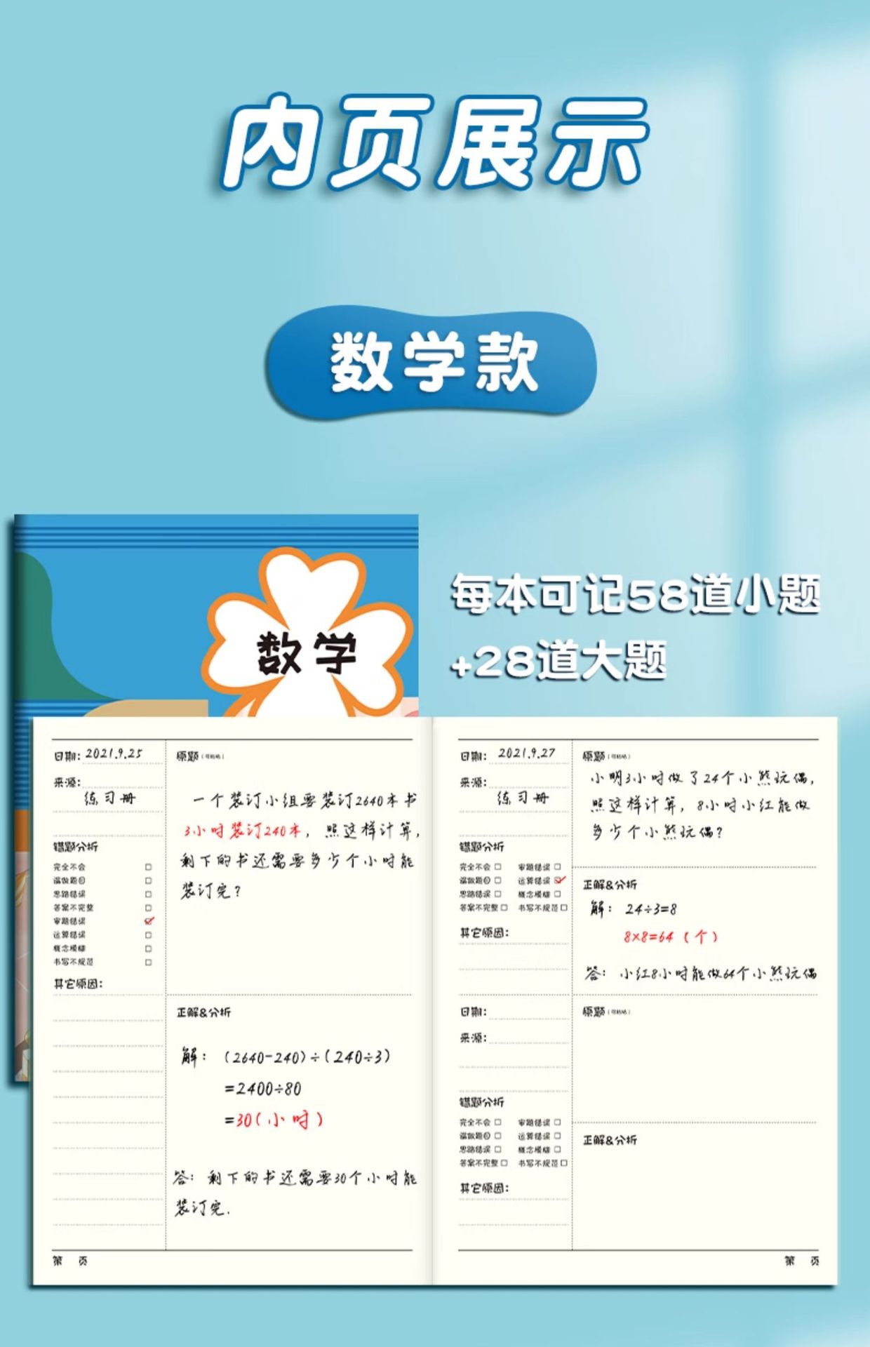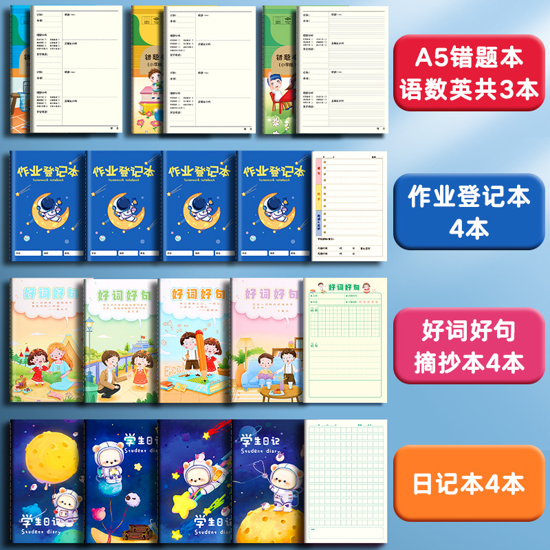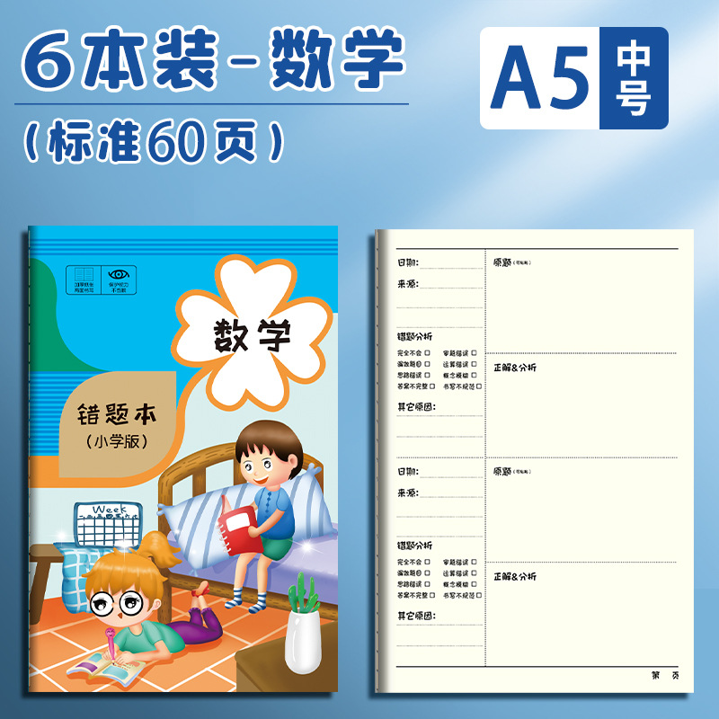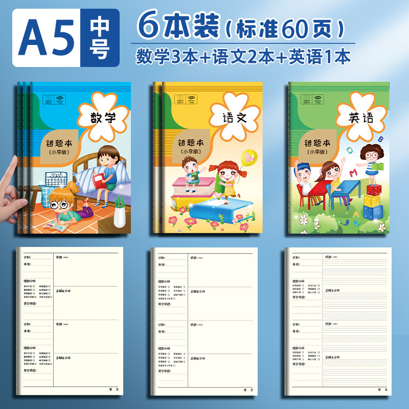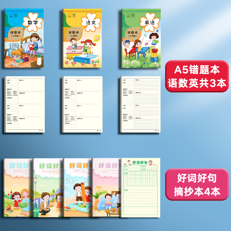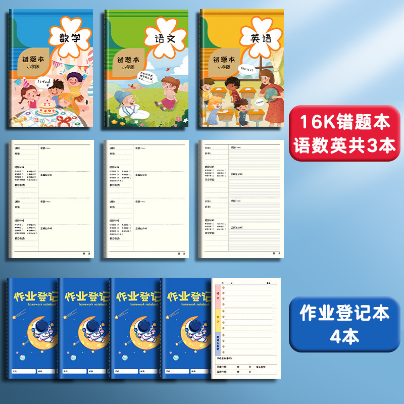 • [7권] A5 오답집, 중국어, 수학, 영어 각 1권 + 숙제 등록서*4