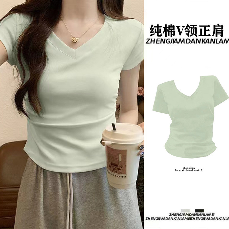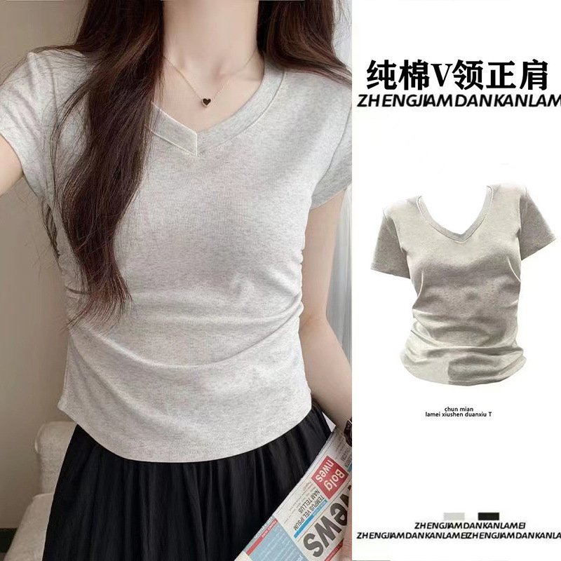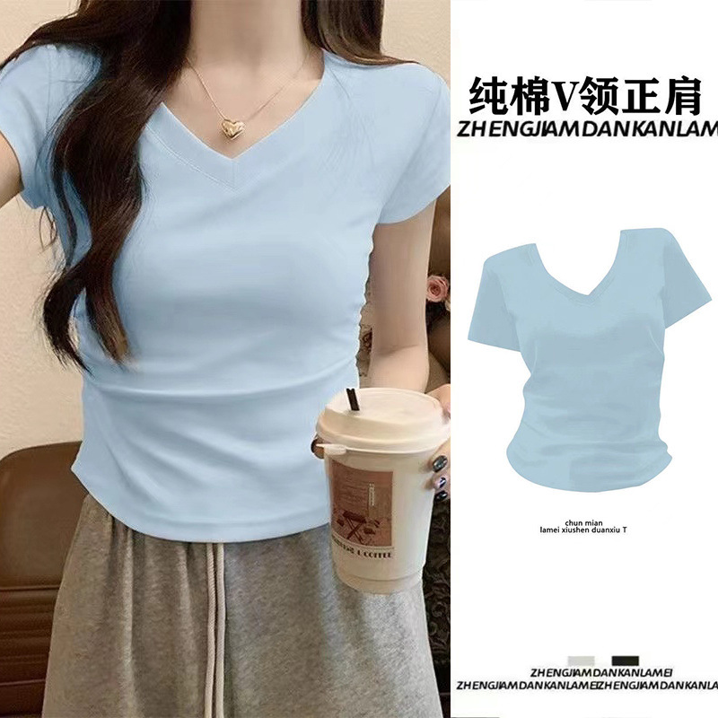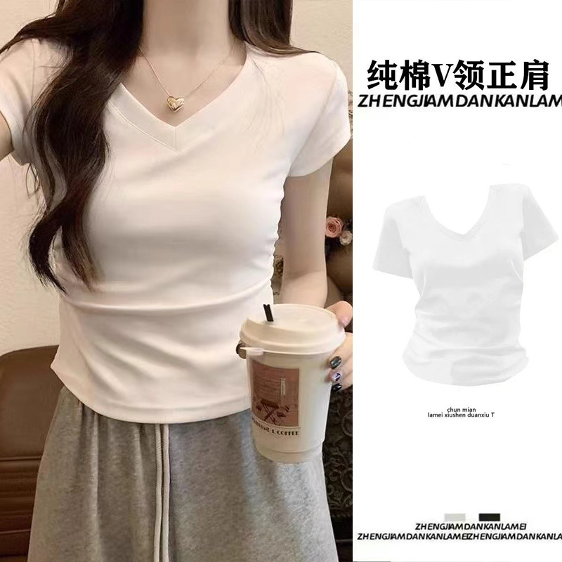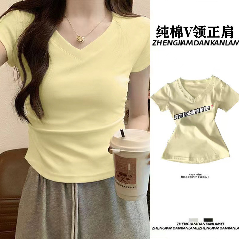 코튼 숄더 칼라 반팔 셔츠 여성의 봄과 여름 새로운 디자인 센스 슬림핏 슬리밍 올 매치 핫 걸 탑