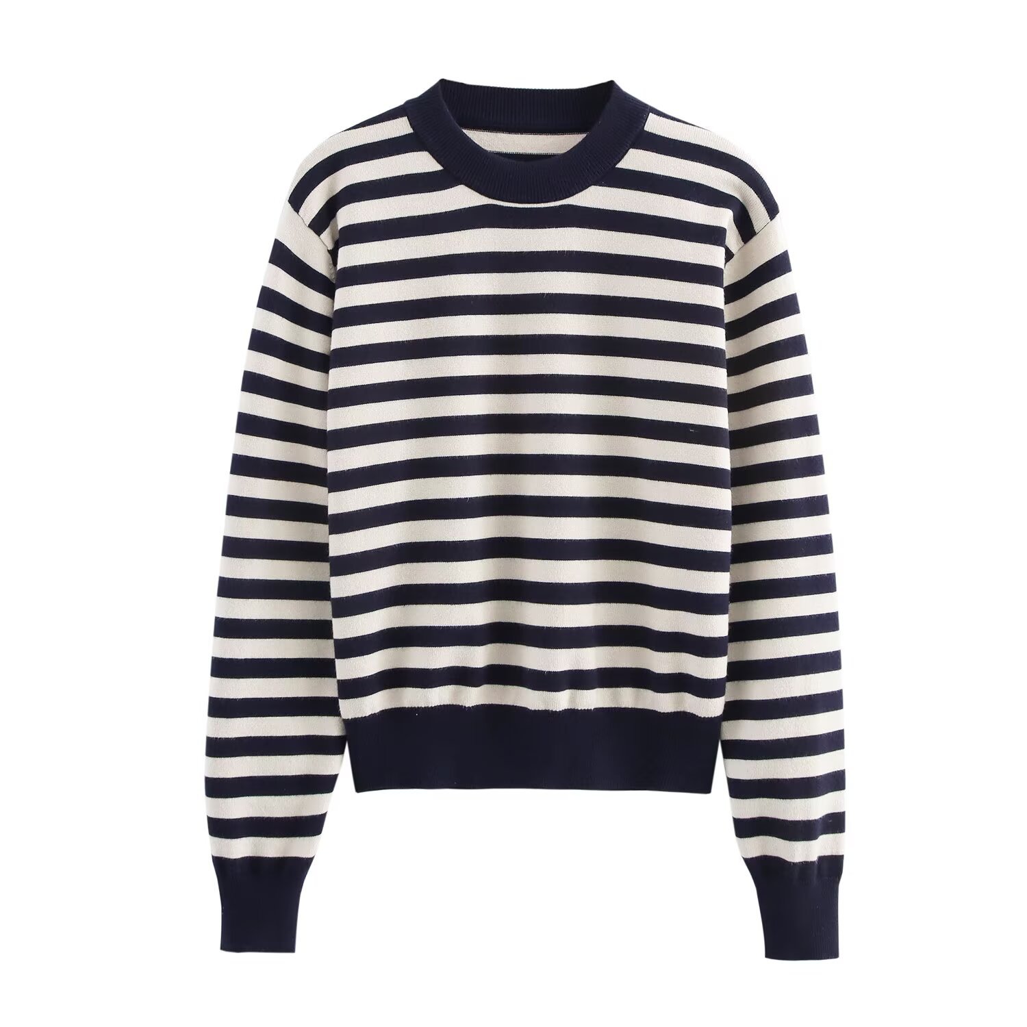 UC & ZA 국경 AliExpress 여성용 유럽과 미국 스타일의 크루 넥 캐주얼 스트라이프 짧은 긴 소매 니트 셔츠 5536009