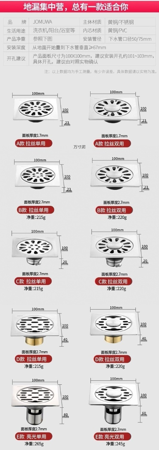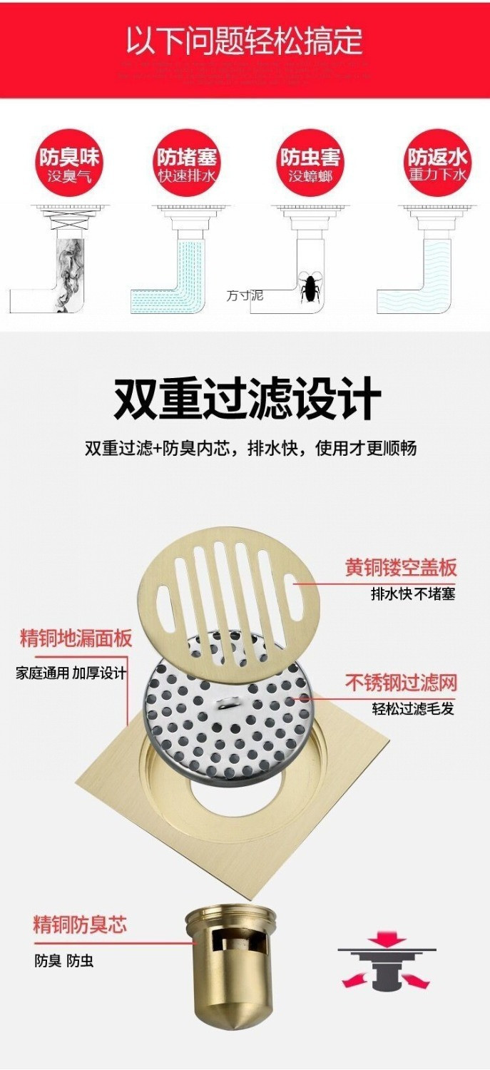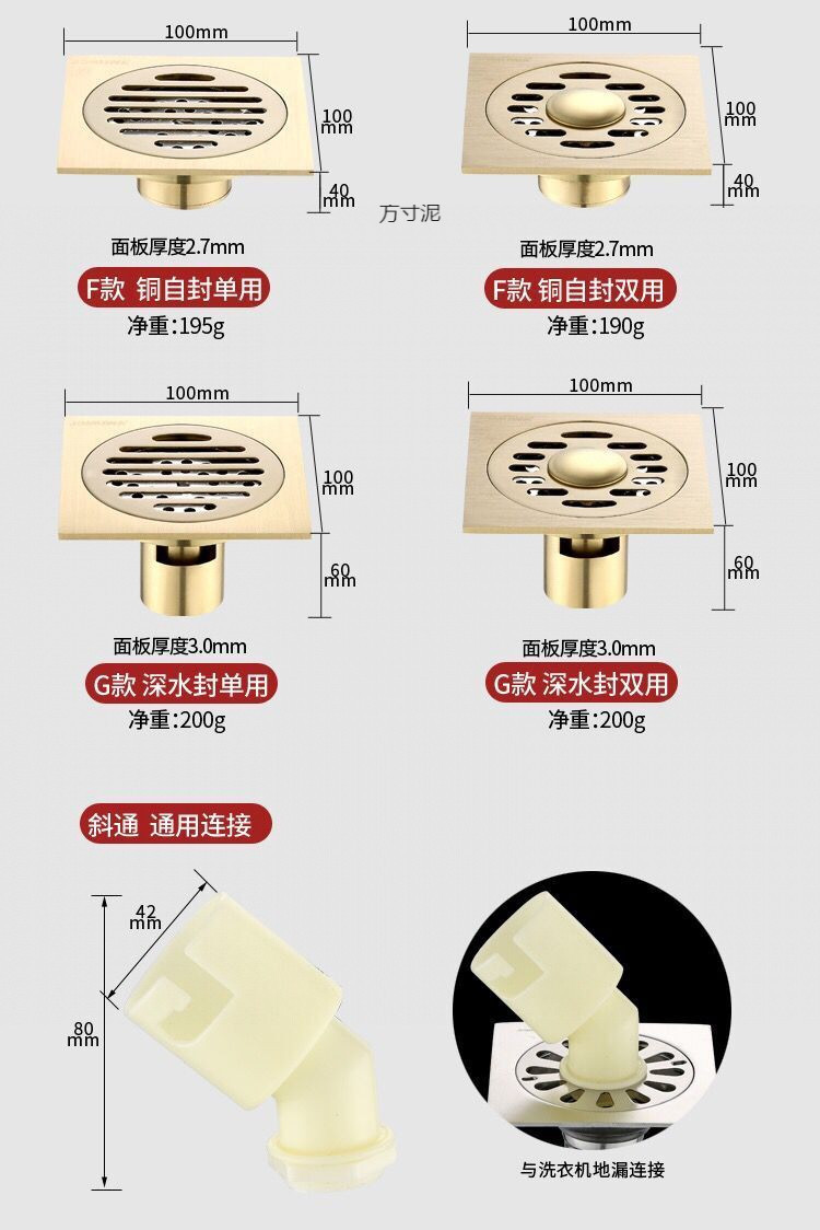두꺼운 구리 소재의 냄새 차단 배수구, 세탁기 전용 방충 배수구, 욕실, 주방 배수구, 스테인리스 배수구 공장스토어 가기