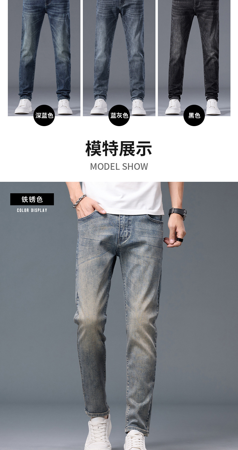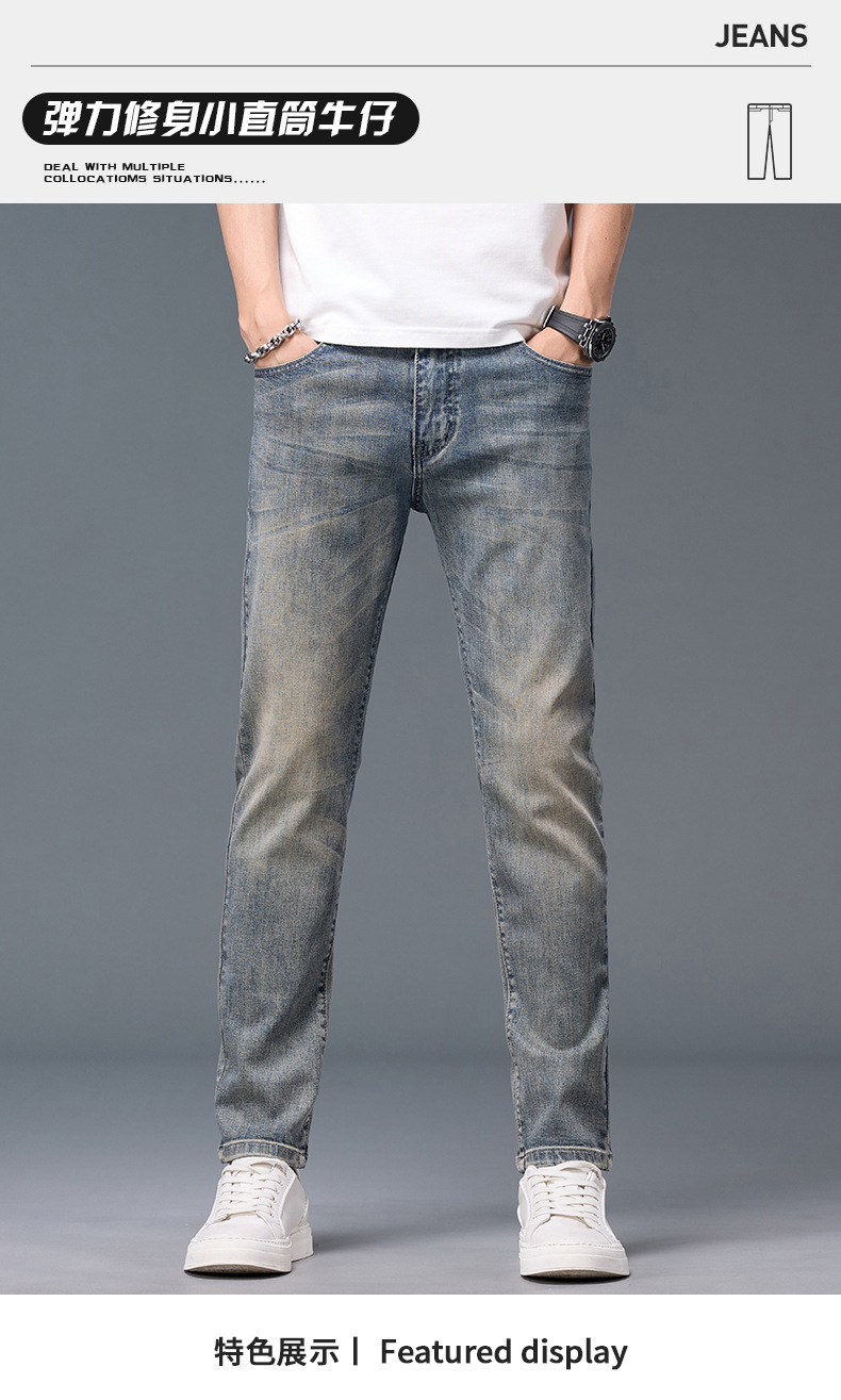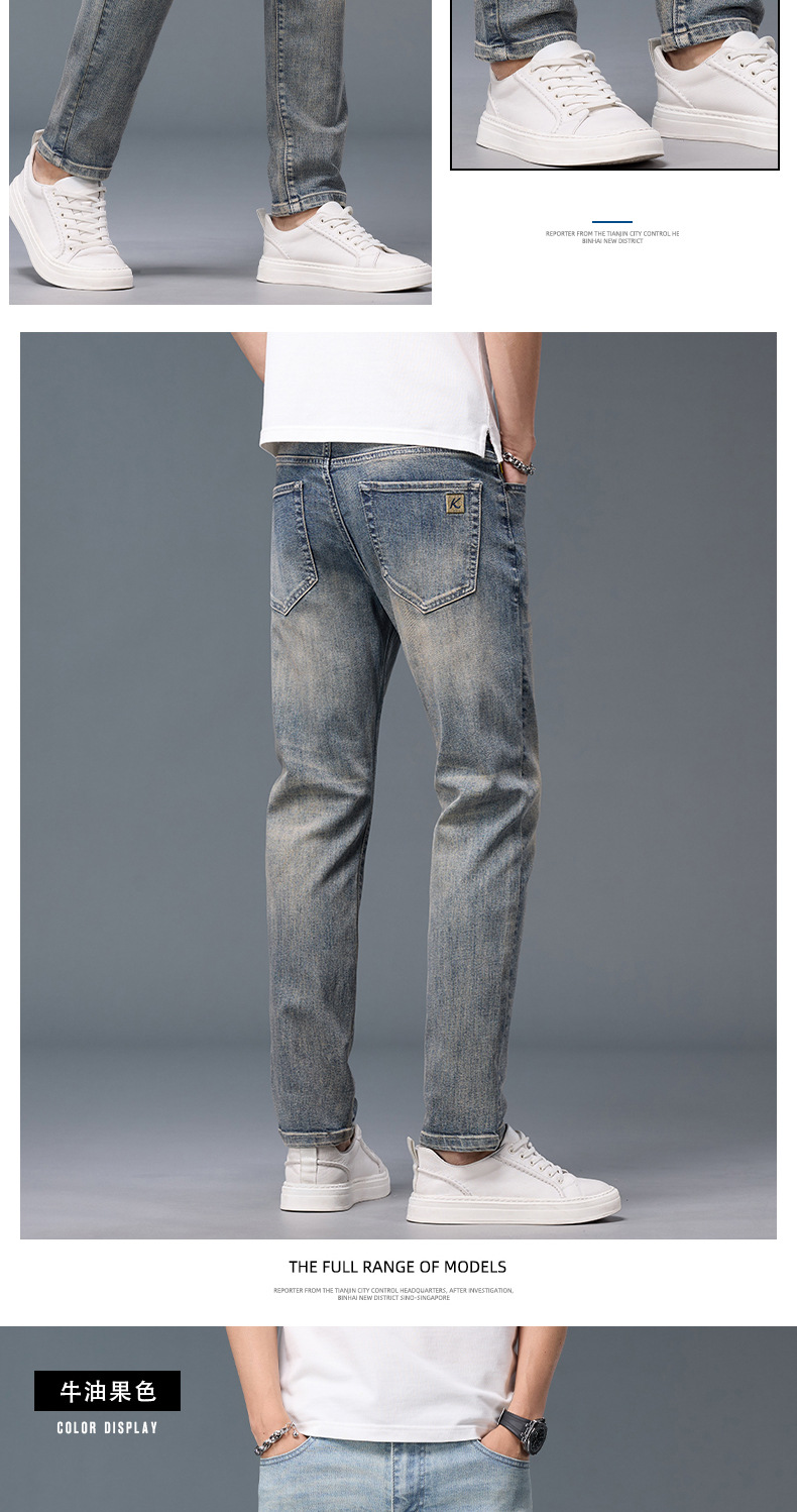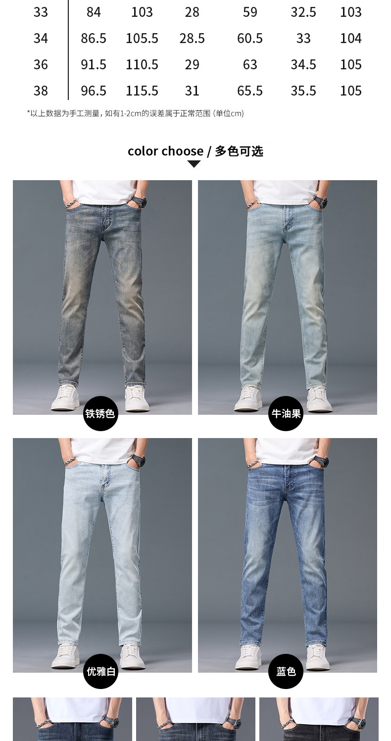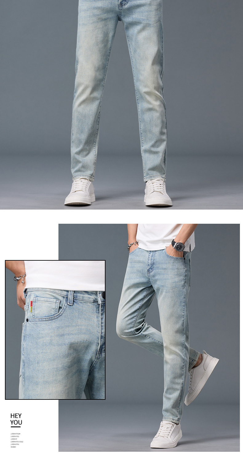 봄과 여름 2025 새로운 스트레치 슬림 핏 한국 스타일 녹 컬러 남성 청바지 남성 캐주얼 바지 839스토어 가기