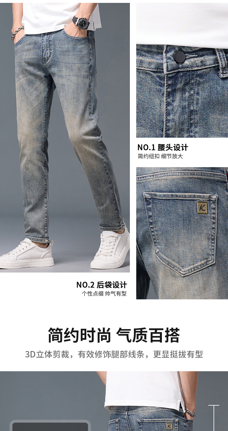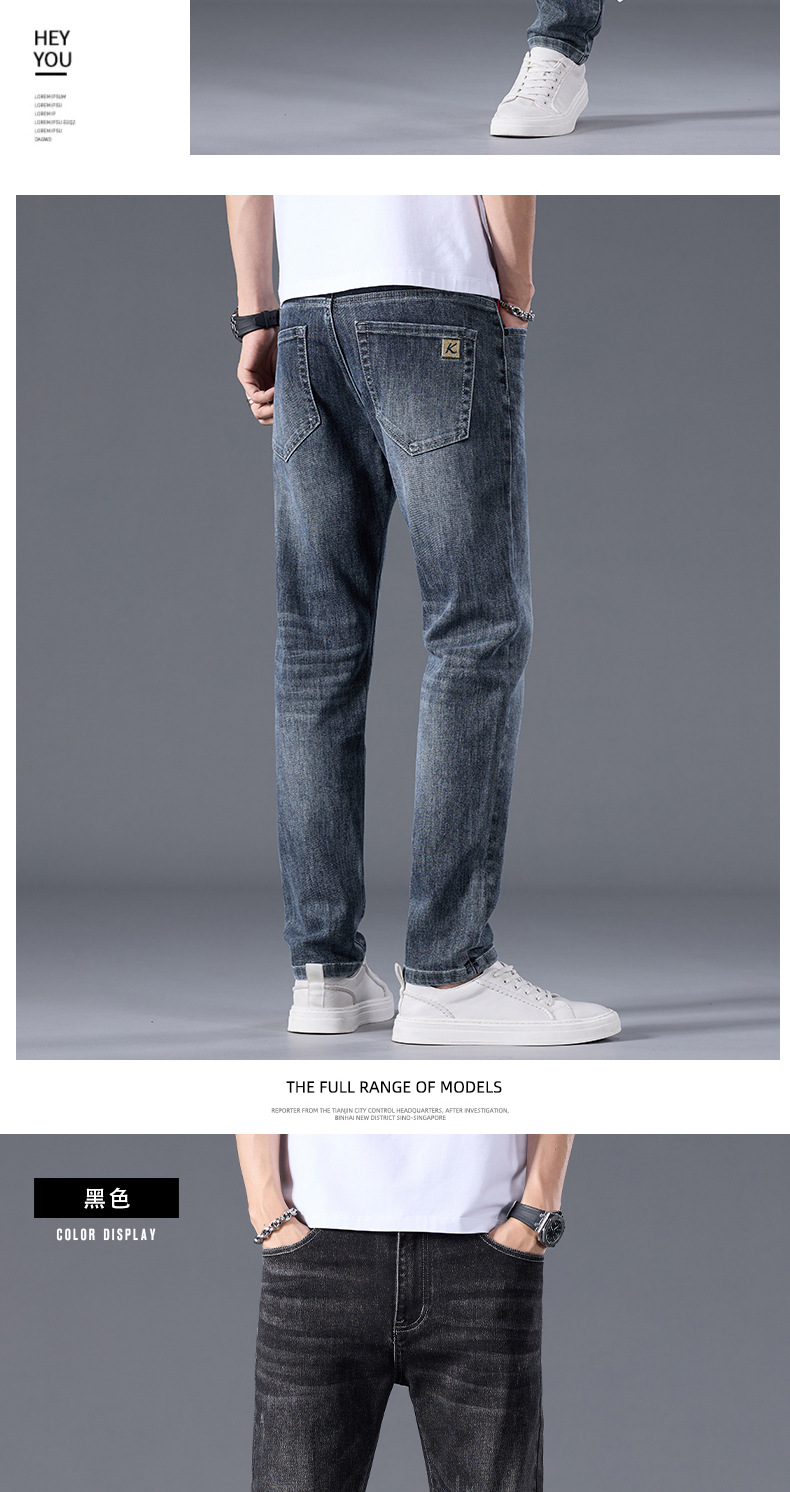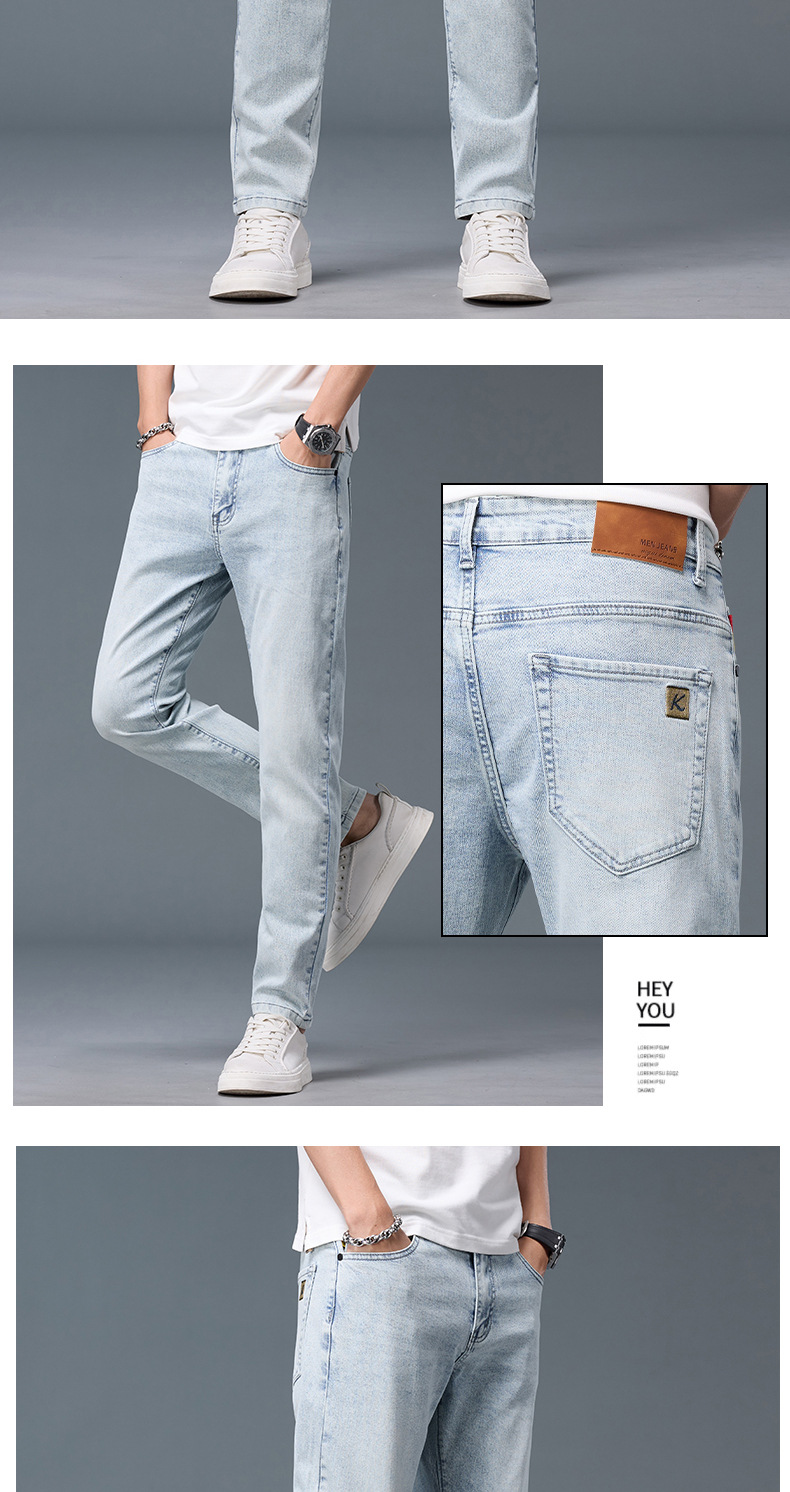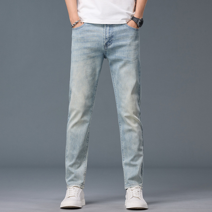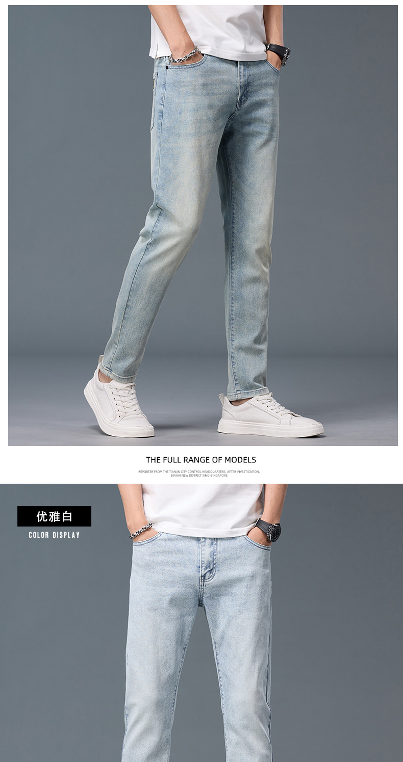 봄과 여름 2025 새로운 스트레치 슬림 핏 한국 스타일 녹 컬러 남성 청바지 남성 캐주얼 바지 839스토어 가기