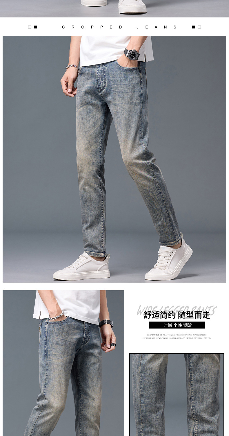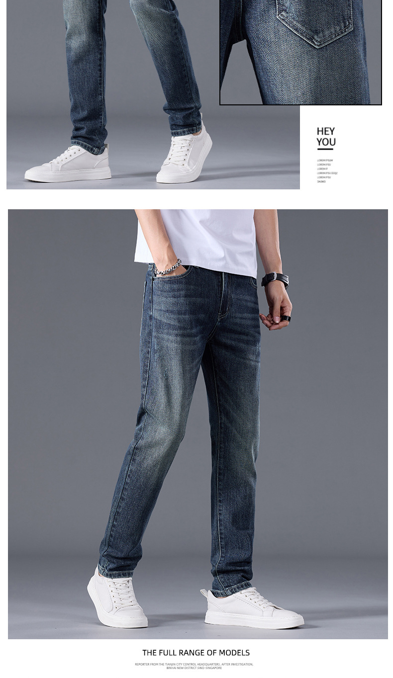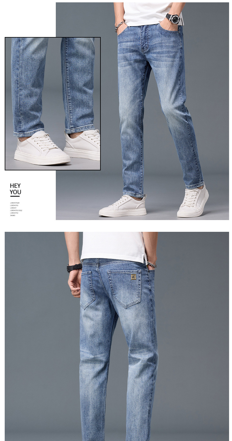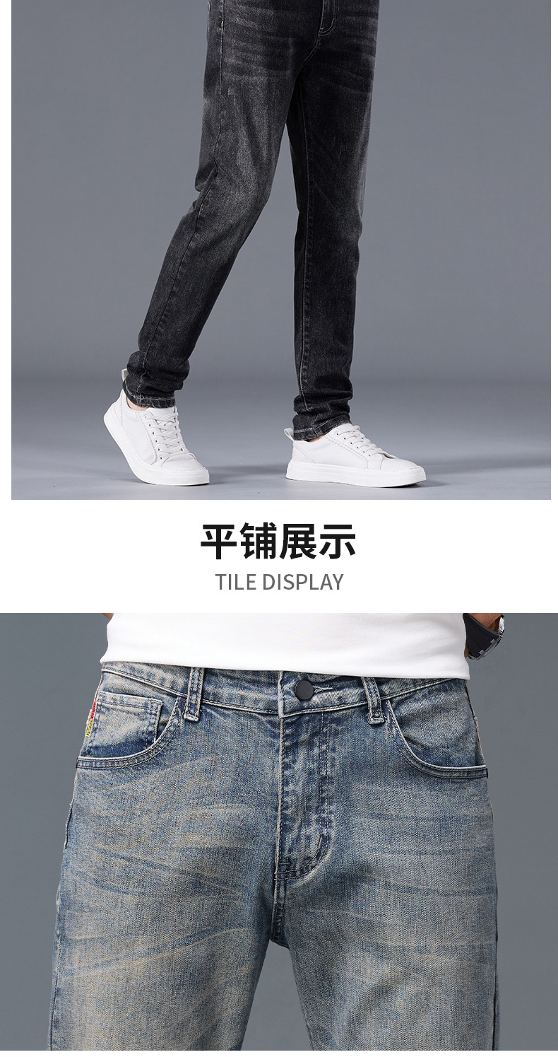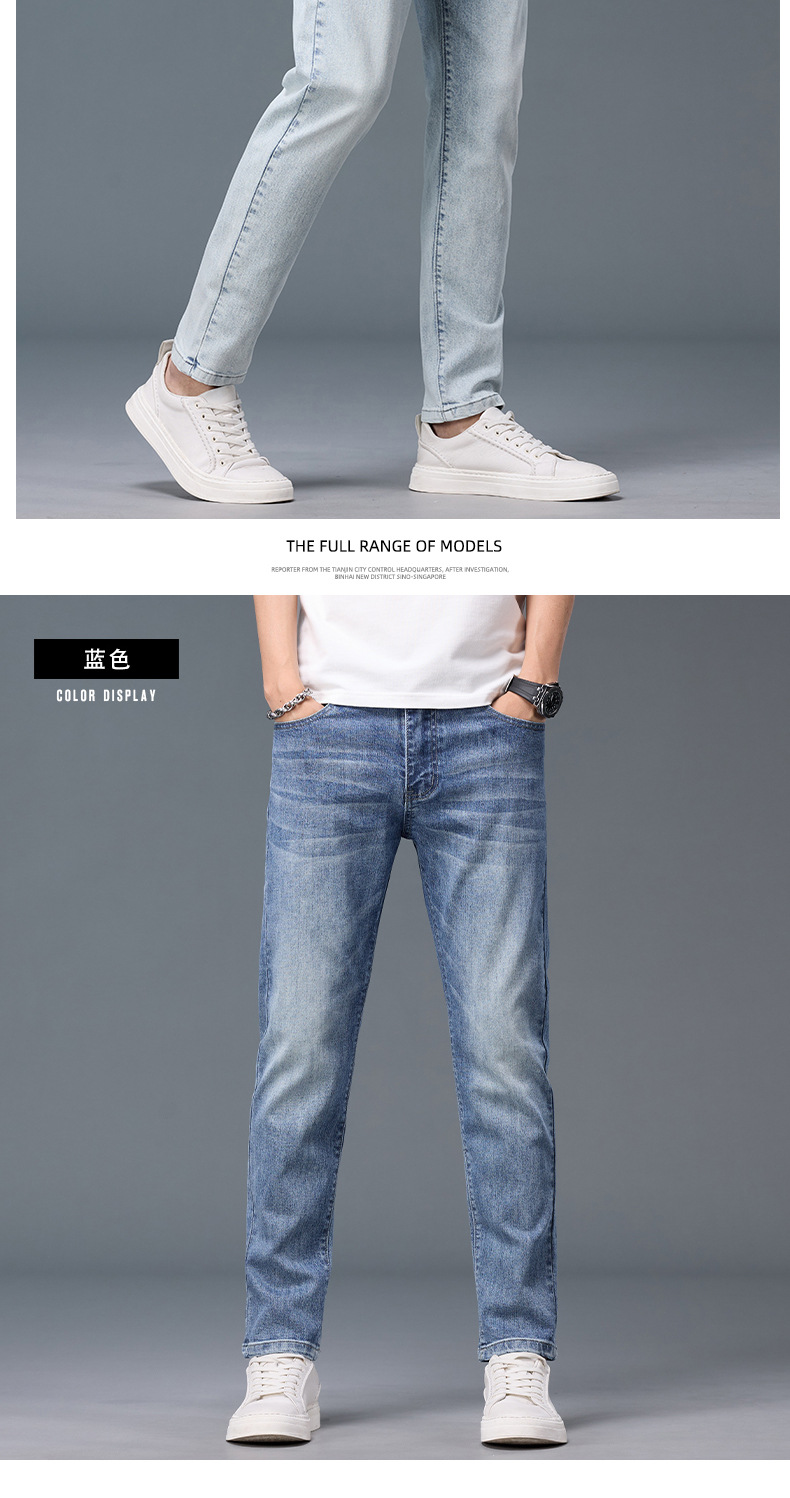 봄과 여름 2025 새로운 스트레치 슬림 핏 한국 스타일 녹 컬러 남성 청바지 남성 캐주얼 바지 839스토어 가기