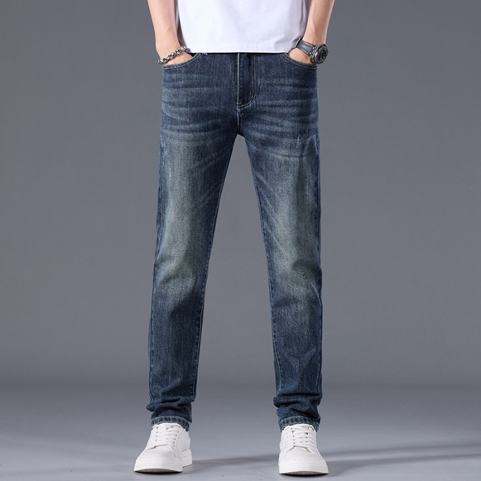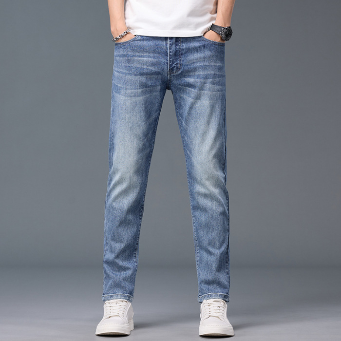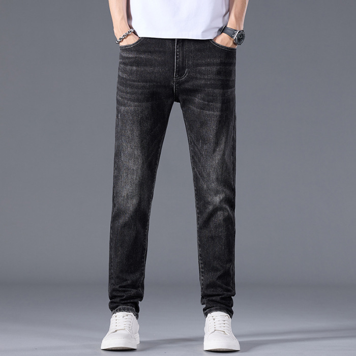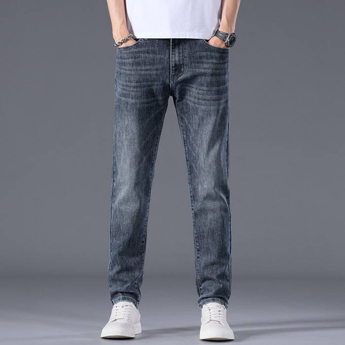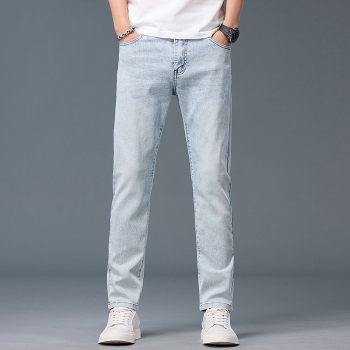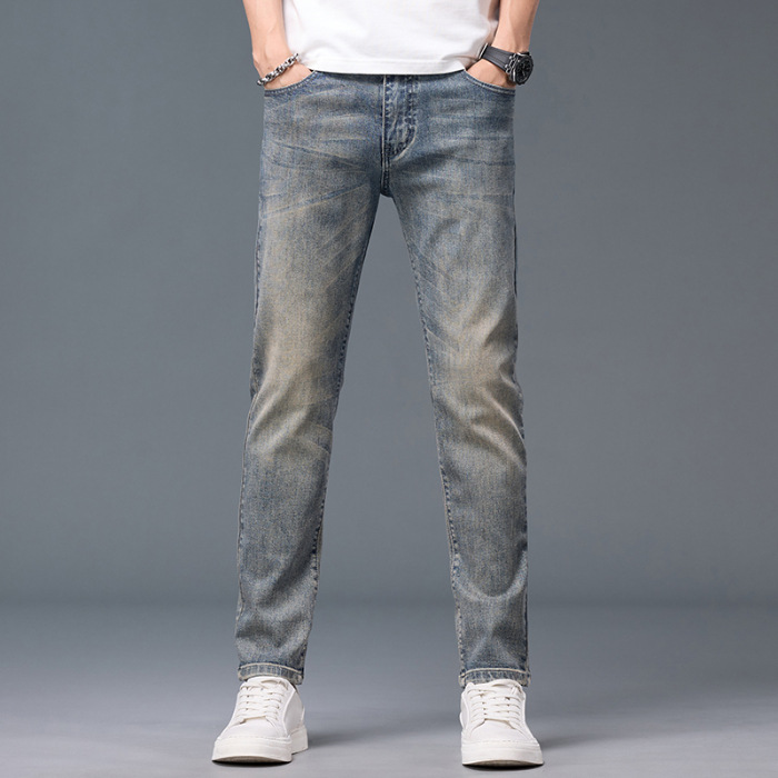 봄과 여름 2025 새로운 스트레치 슬림 핏 한국 스타일 녹 컬러 남성 청바지 남성 캐주얼 바지 839