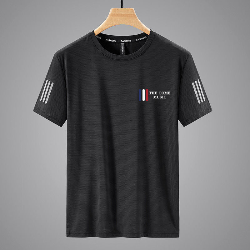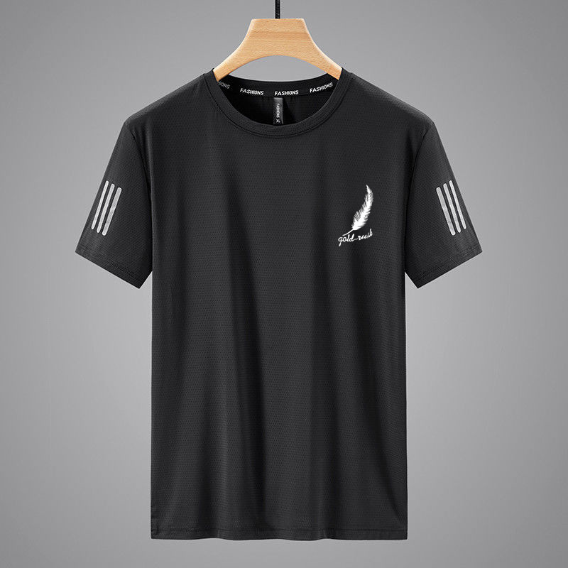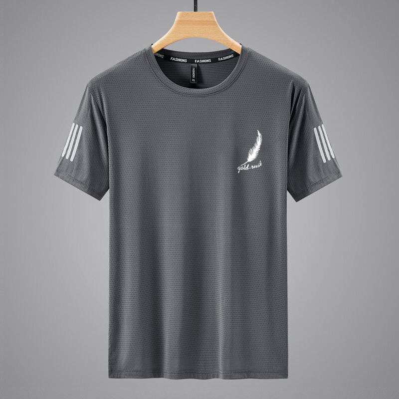 남자 아이스 실크 메쉬 빠른 건조 옷 여름 얇은 플러스 사이즈 느슨한 패셔너블 통기성 호흡 훈련 달리기 피트니스 짧은 소매