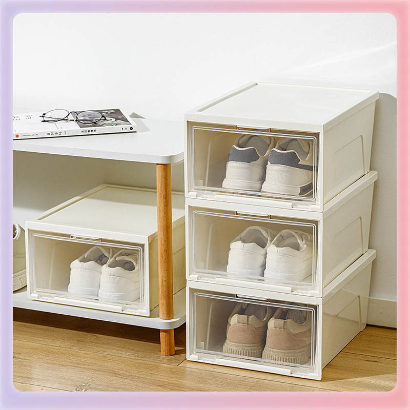 ✅도매 단색 신발 상자 두꺼운 저장 상자 플립 플라스틱 투명 신발 신발 캐비닛 보관 간단한 신발스토어 가기