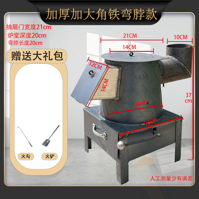 • 스토브 커버 + 두꺼운 패턴 강철 스모키 스토브 [하이 앵글 다리 모델] - 매우 두꺼운 패턴 스토브 [구부러진 입 액세서리]