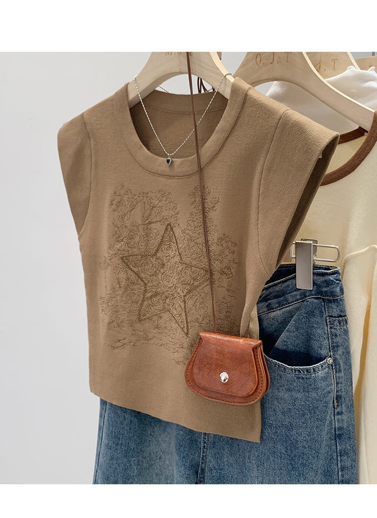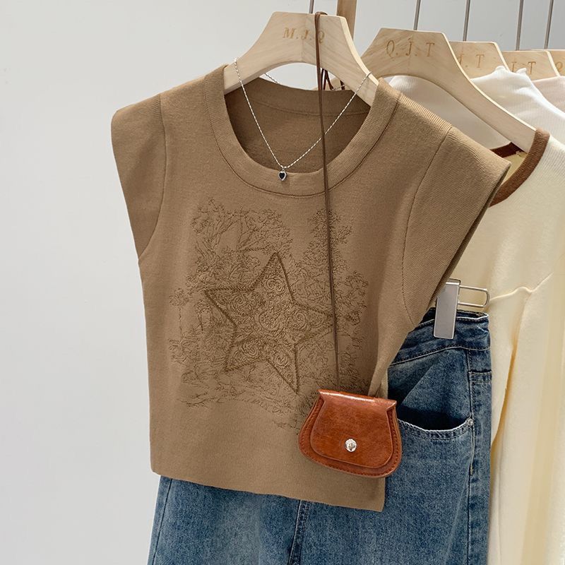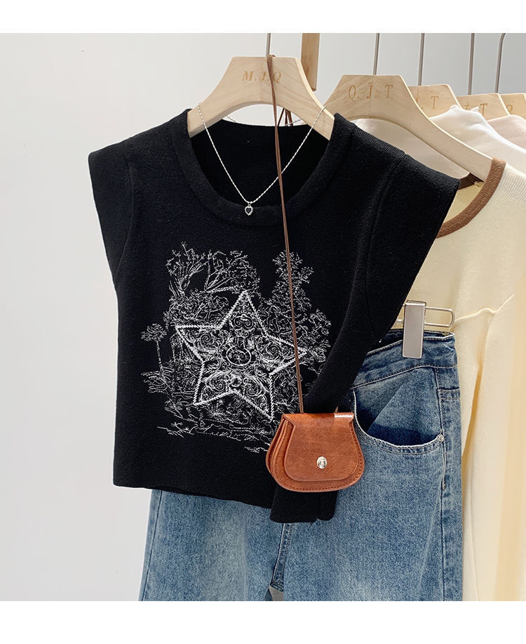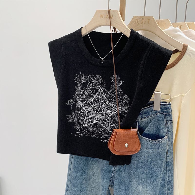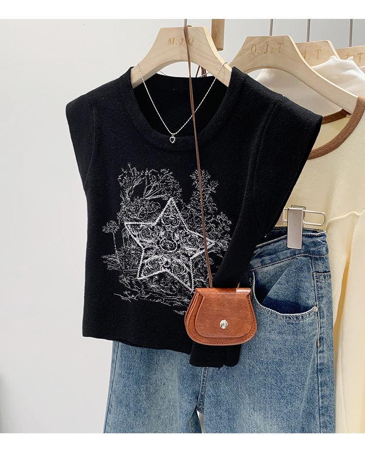 아메리칸 스타일 레트로 중공업 자수 민소매 조끼 여성용 여름 신간 스타 니트 셔츠 조끼스토어 가기