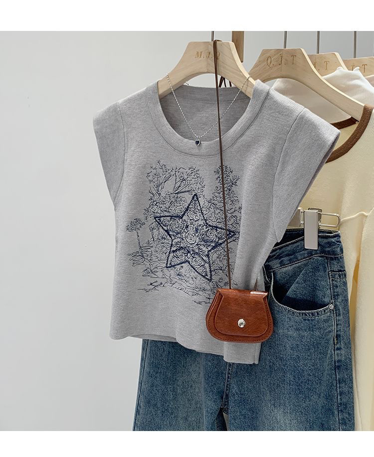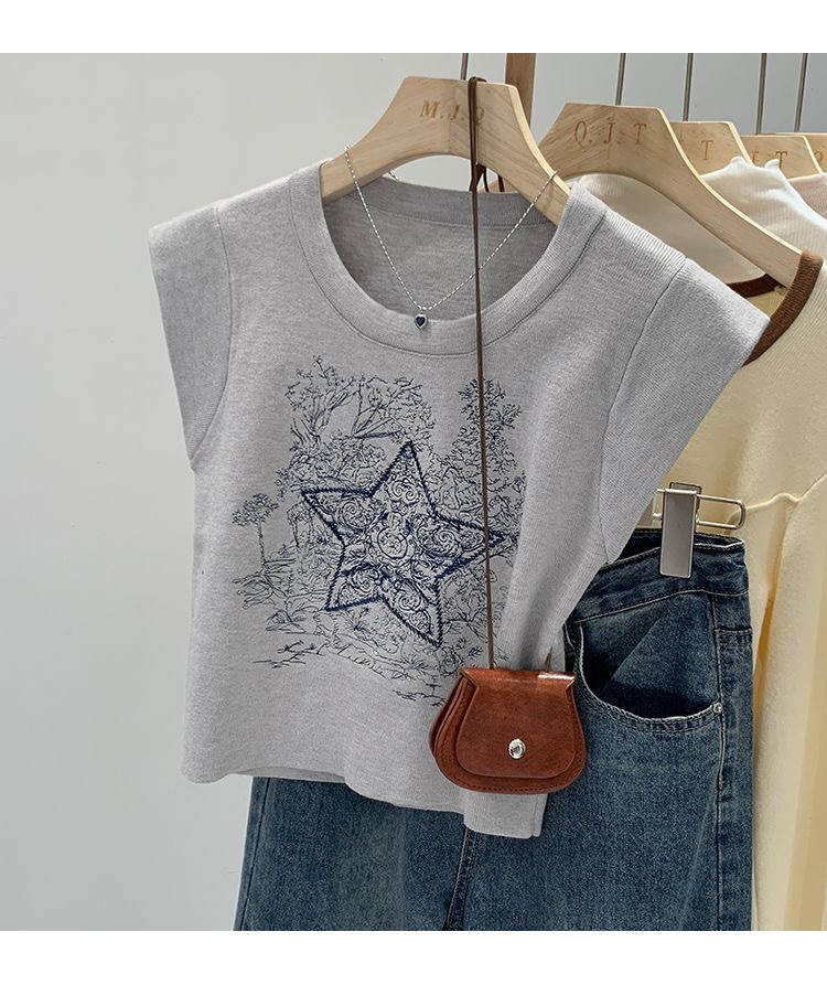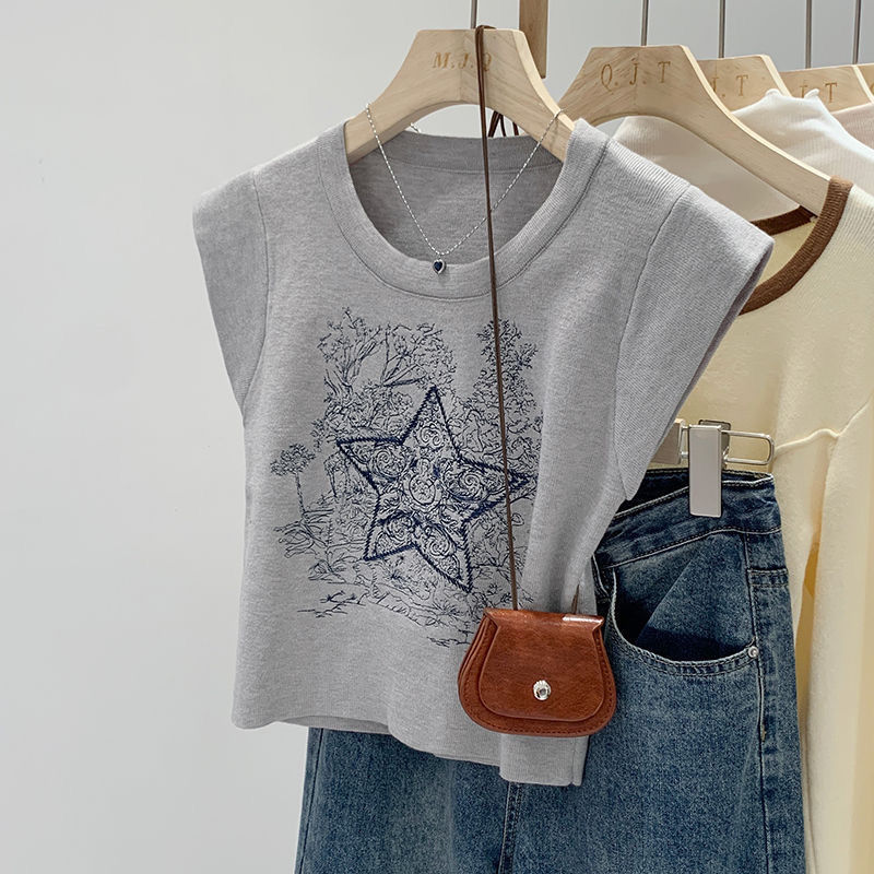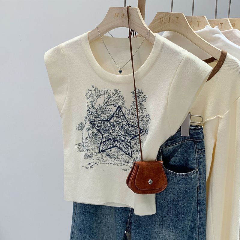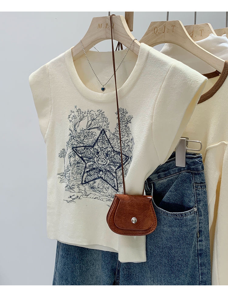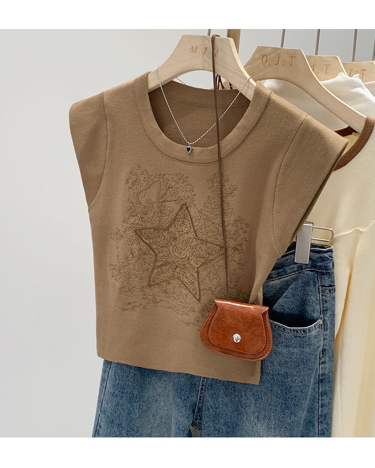 아메리칸 스타일 레트로 중공업 자수 민소매 조끼 여성용 여름 신간 스타 니트 셔츠 조끼스토어 가기