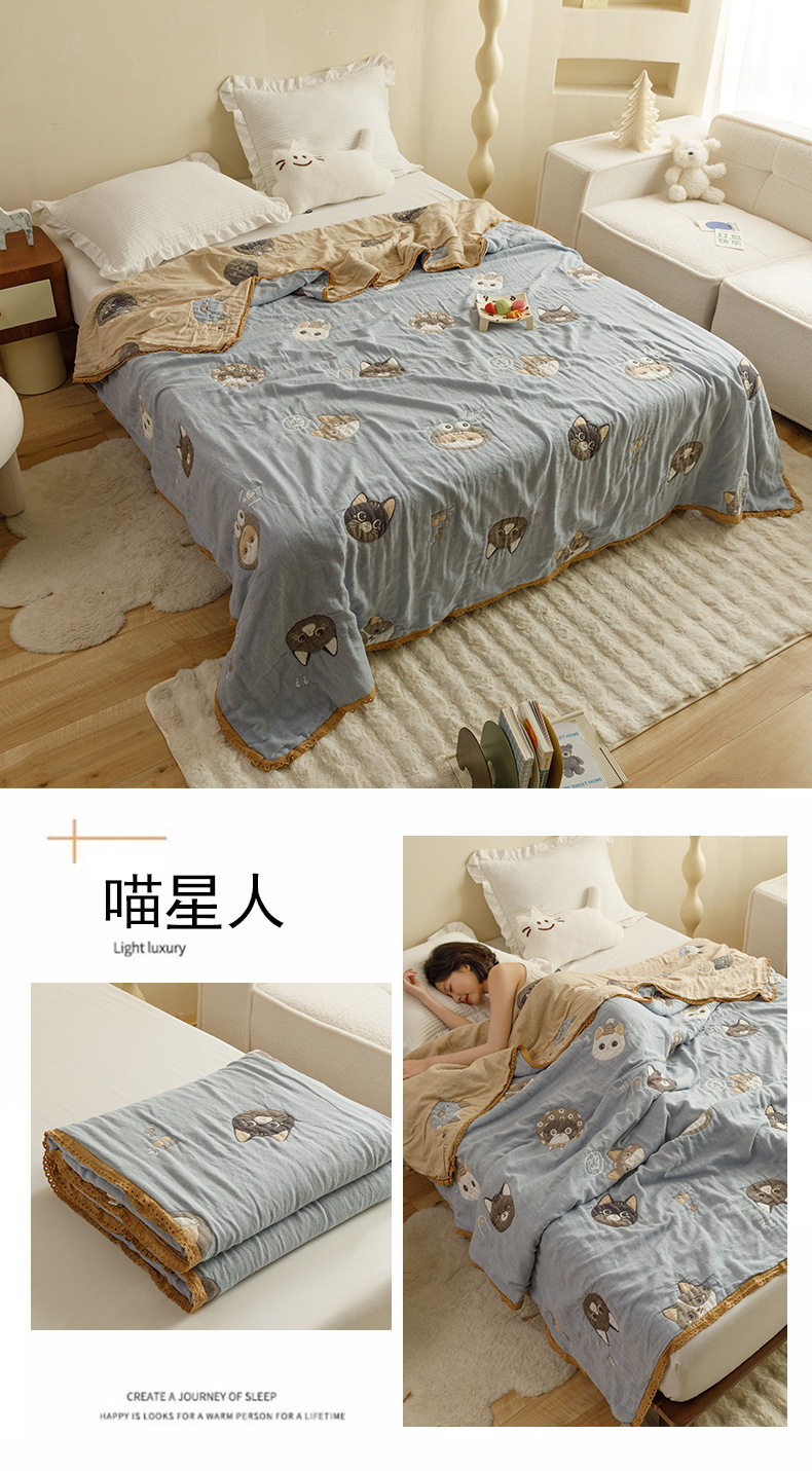 만화 어린이 퍼프 퀼트 여름 5 층 거즈 타월 이불 여름 이불 여름 쿨 퀼트 에어컨 코어 커버 담요스토어 가기