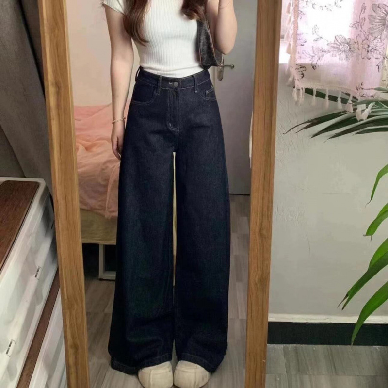 다크 레트로 아메리칸 스타일 뜨거운 소녀 청바지 여성 여름 새로운 높은 허리 슬리밍 넓은 다리 바지스토어 가기