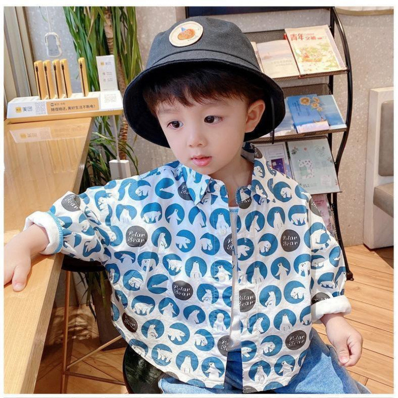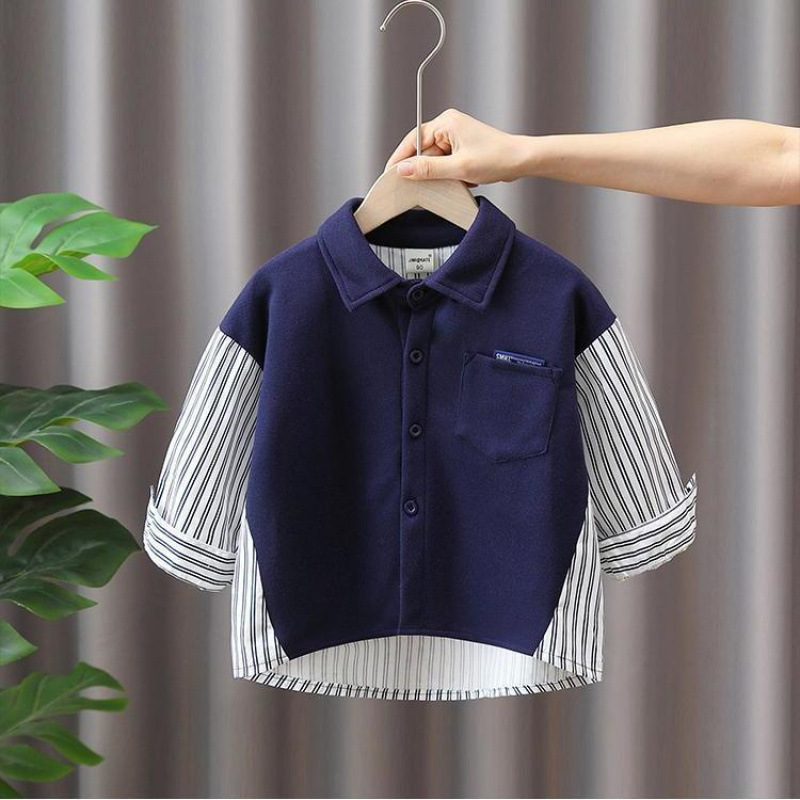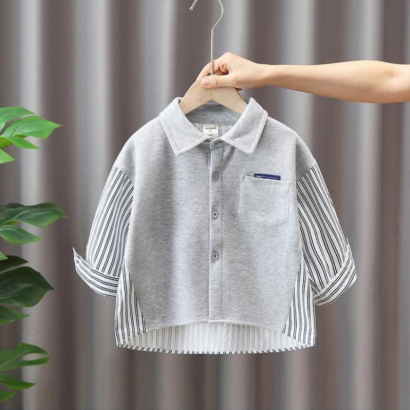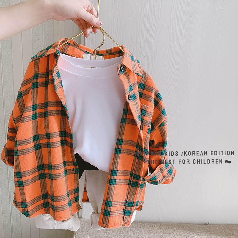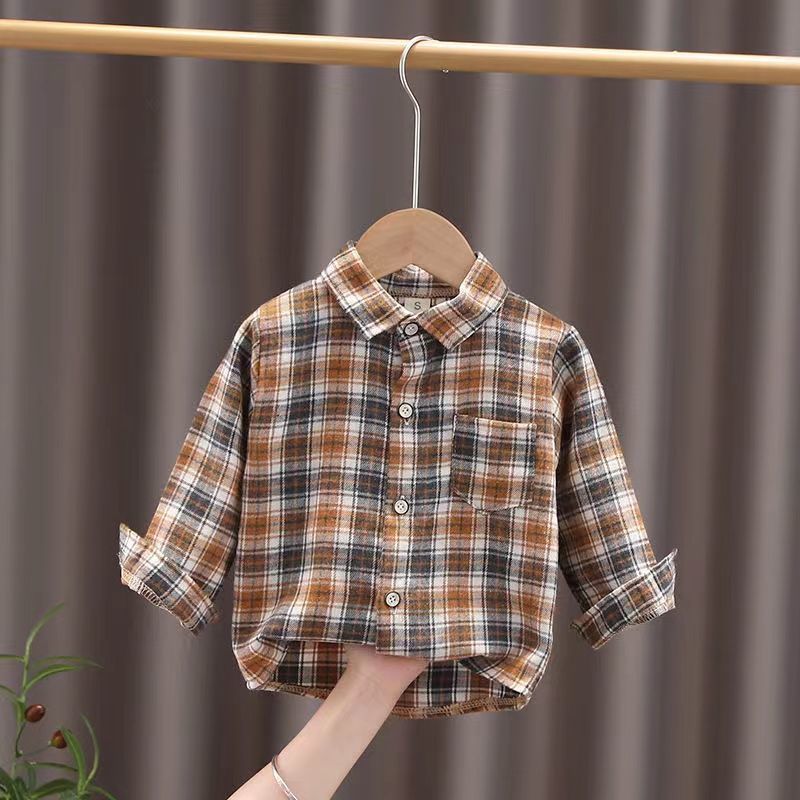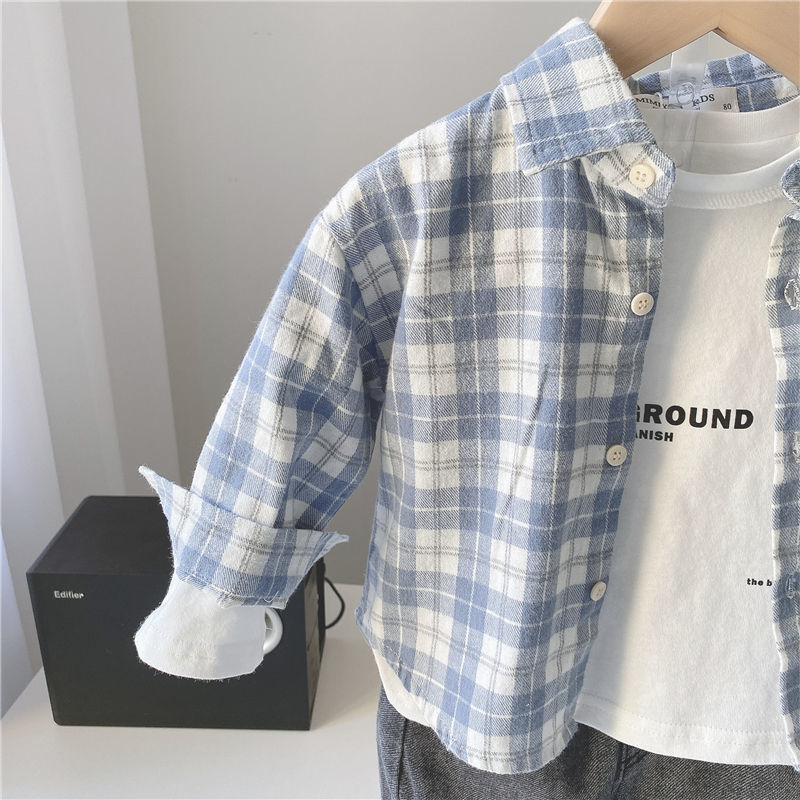 소년 파란 격자 무늬 긴 소매 셔츠 2025 가을 새 봄과 가을 어린이 셔츠 어린이 유행 아기 재킷 코트스토어 가기