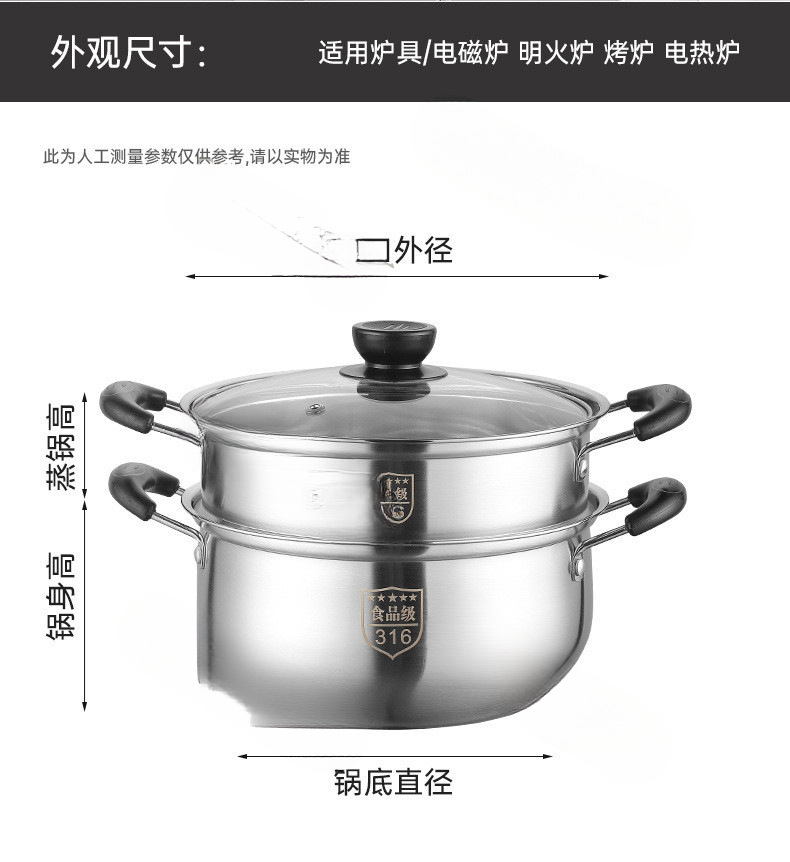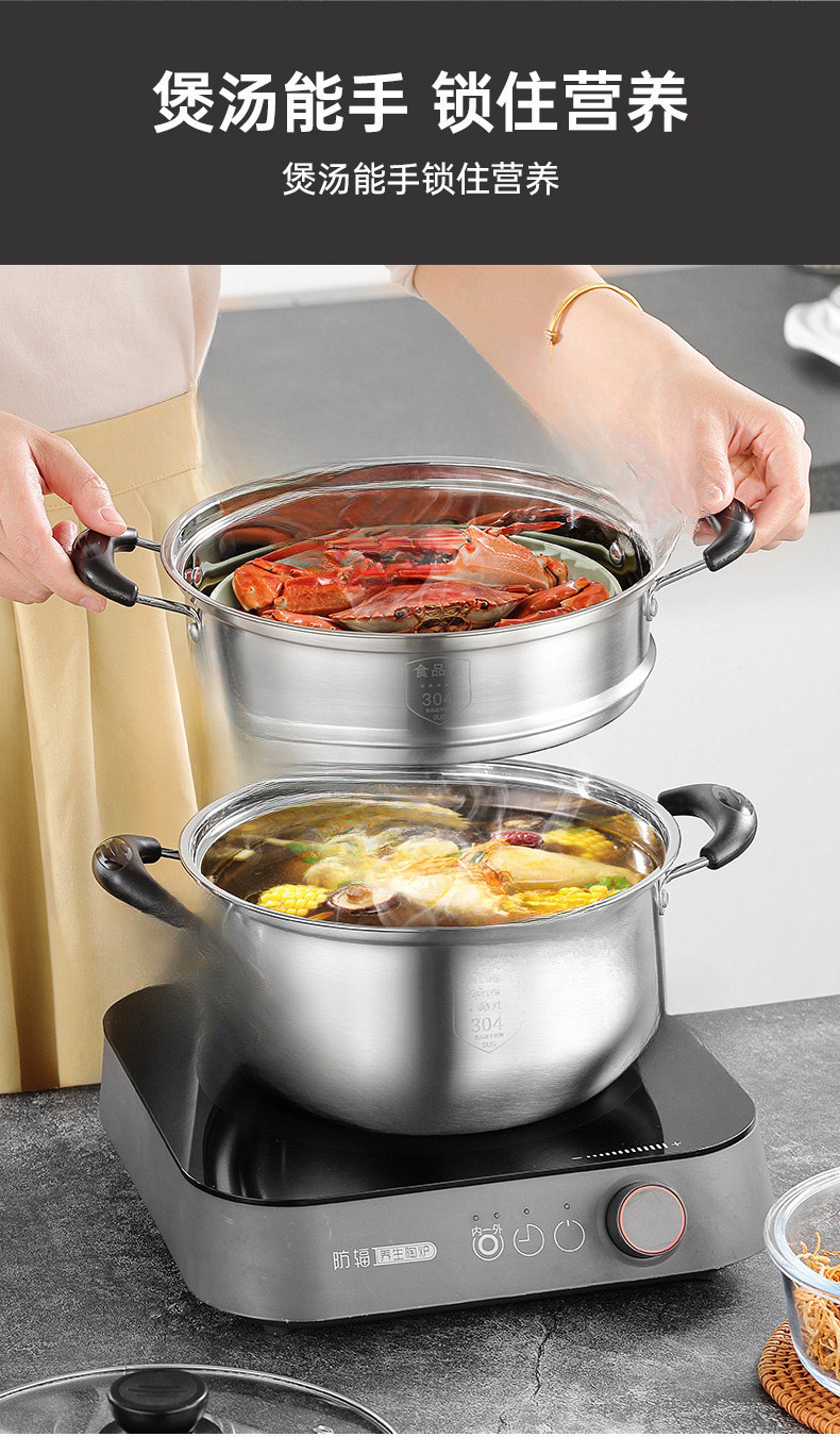죽 수프 냄비 스테인레스 스틸 두꺼운 이중 귀 가정 요리 작은 냄비 기선 유도 밥솥 요리 냄비 찜 대외 무역 오리지널 주문