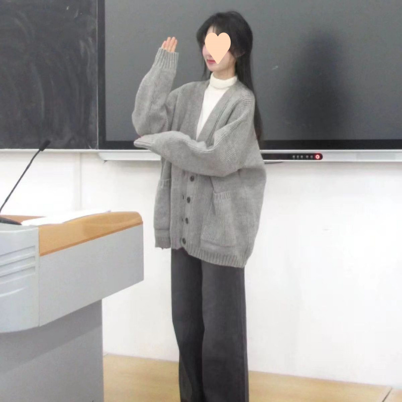 하이 엔드 느낌 잘 생긴 2025 봄 새로운 니트 폭발 탑 게으른 카디건 코트 회색 스웨터스토어 가기