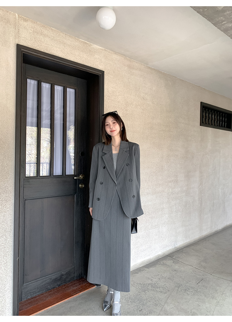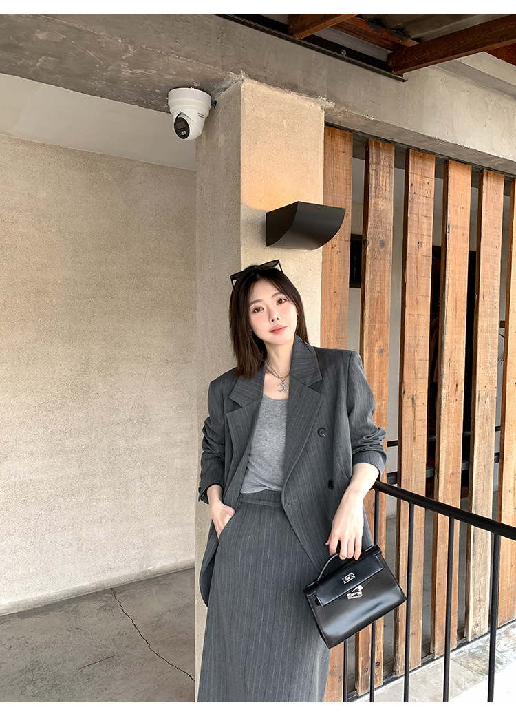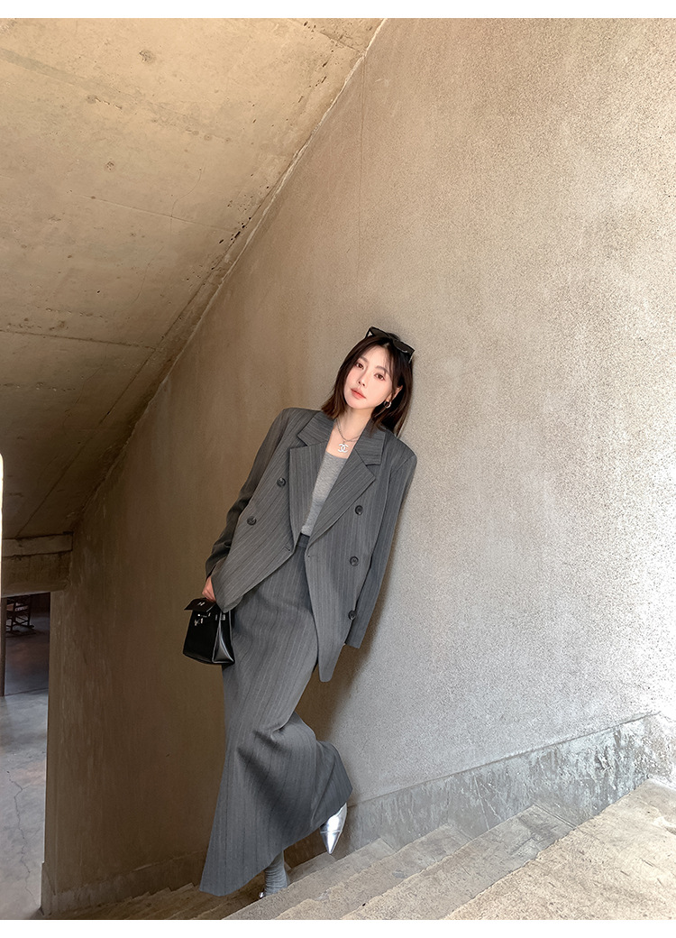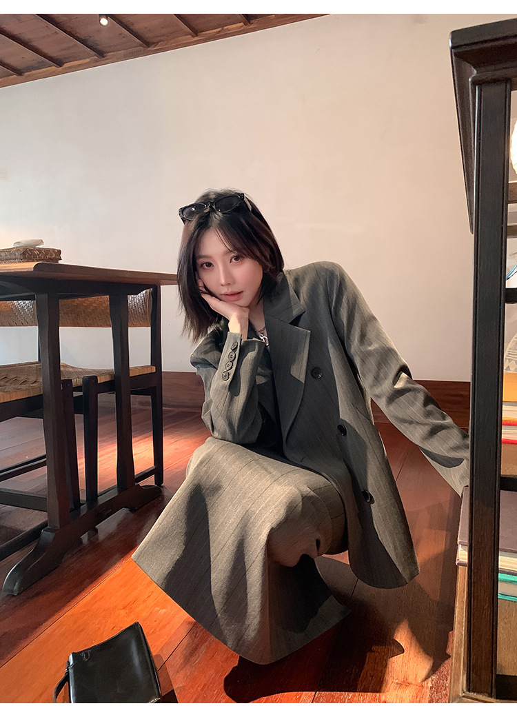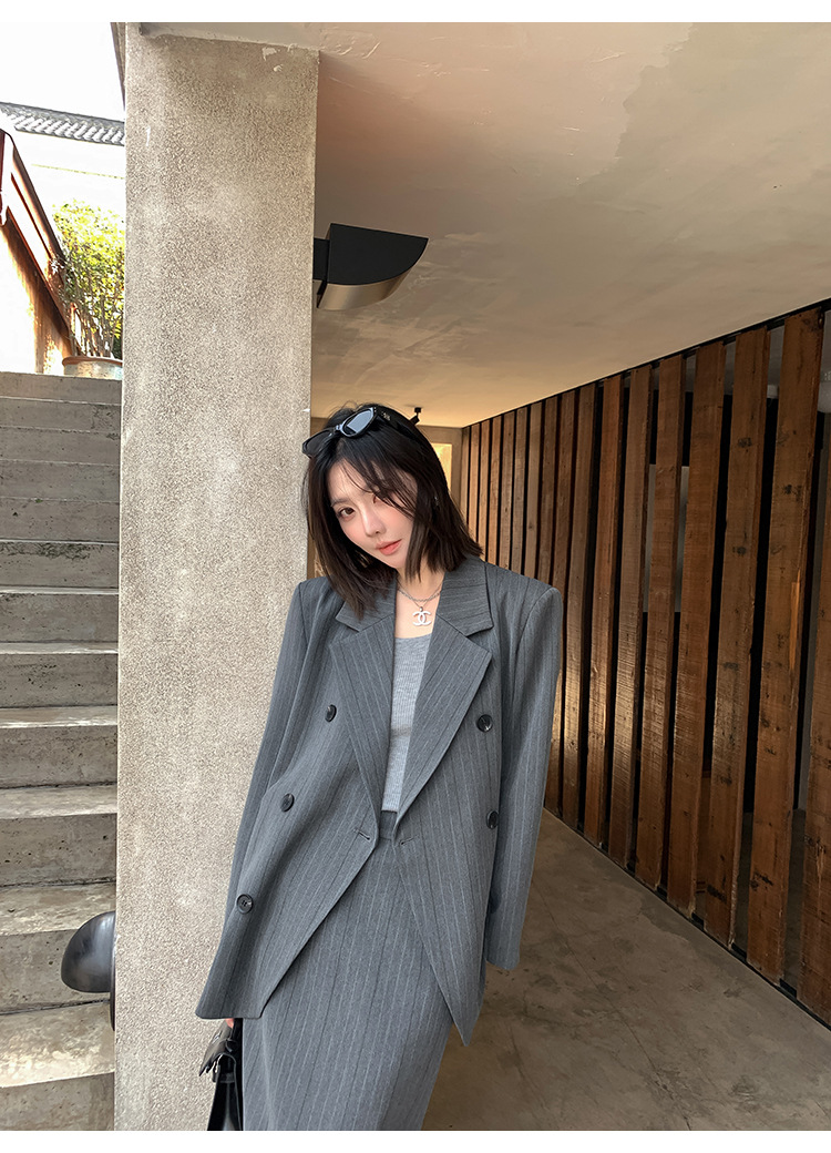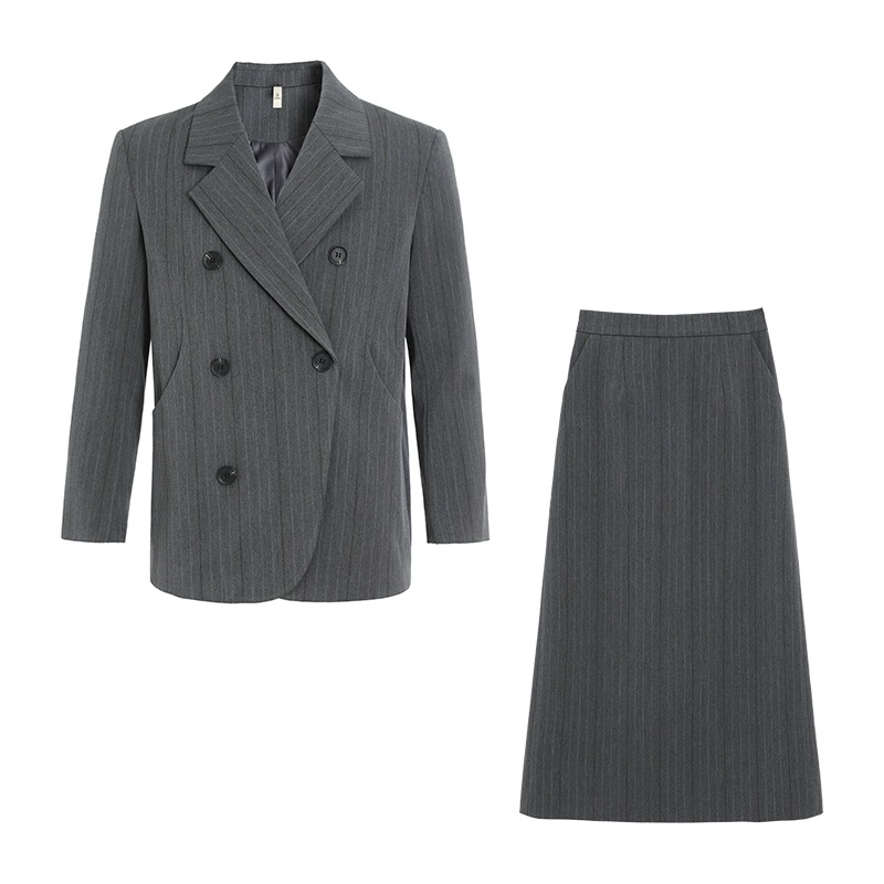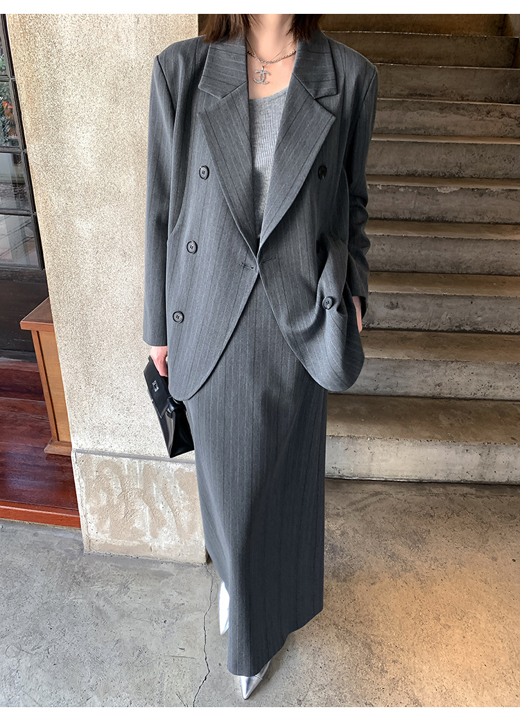 플러스 사이즈 여성 줄무늬 작은 세트 가을 새로운 약간 뚱뚱한 mm 세트 높은 허리 오버 스커트 슬림 투피스 세트 5016스토어 가기