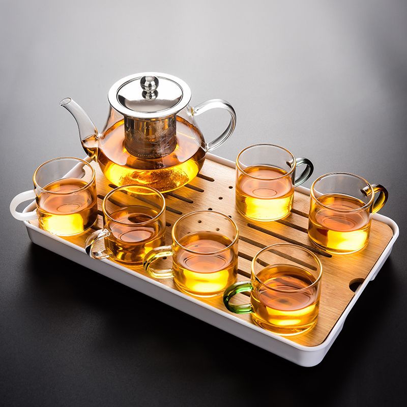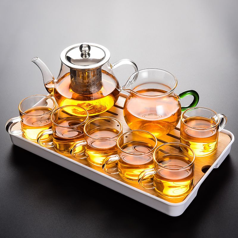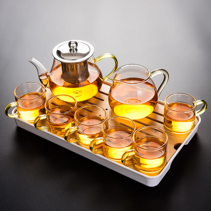 주전자 홈 차 유리 차 세트 세트 홈 차 쿵푸 차 세트 내열 필터 스테인레스 스틸 Zhao Zhiqian