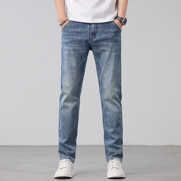 봄과 여름 2025 새로운 스트레치 슬림 핏 한국 스타일 남성 청바지 남성 캐주얼 트렌디 트렌디 팬츠 824