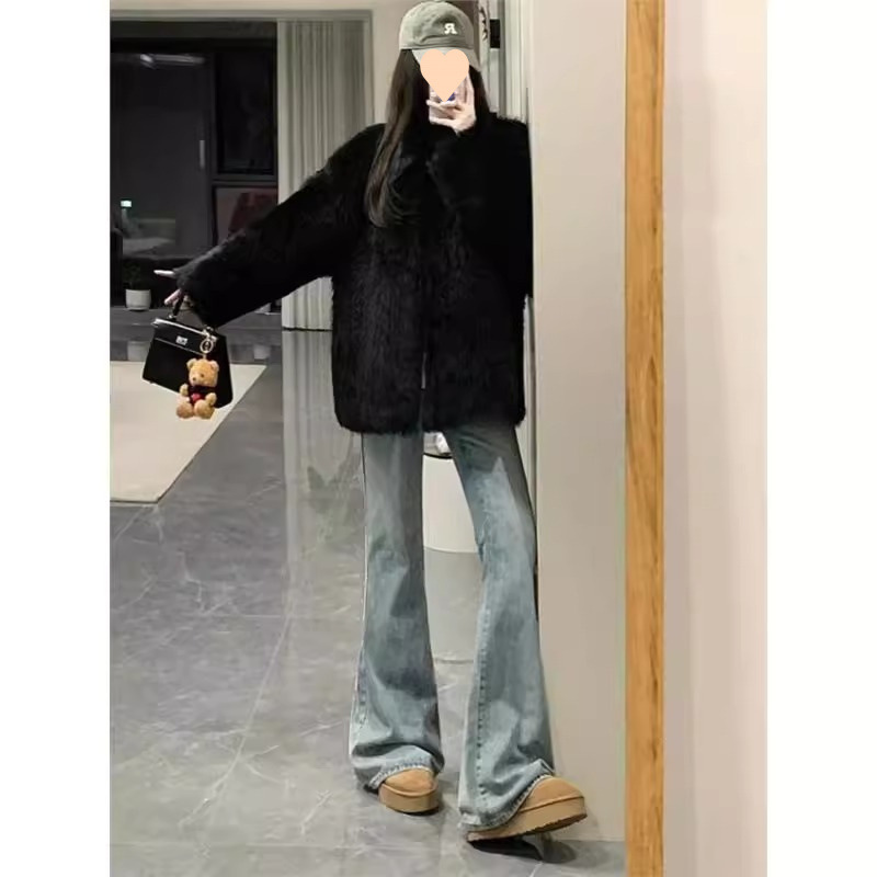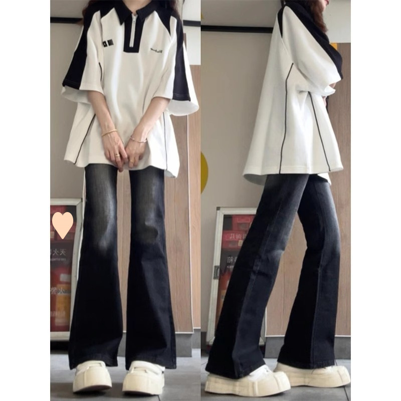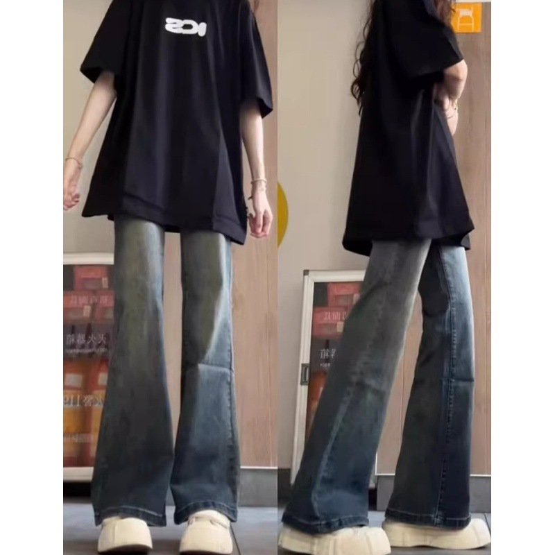 미국 레트로 마이크로 플레어 청바지 여성의 봄과 가을 새로운 다리 높은 허리 느슨한 슬림 핏 바지스토어 가기