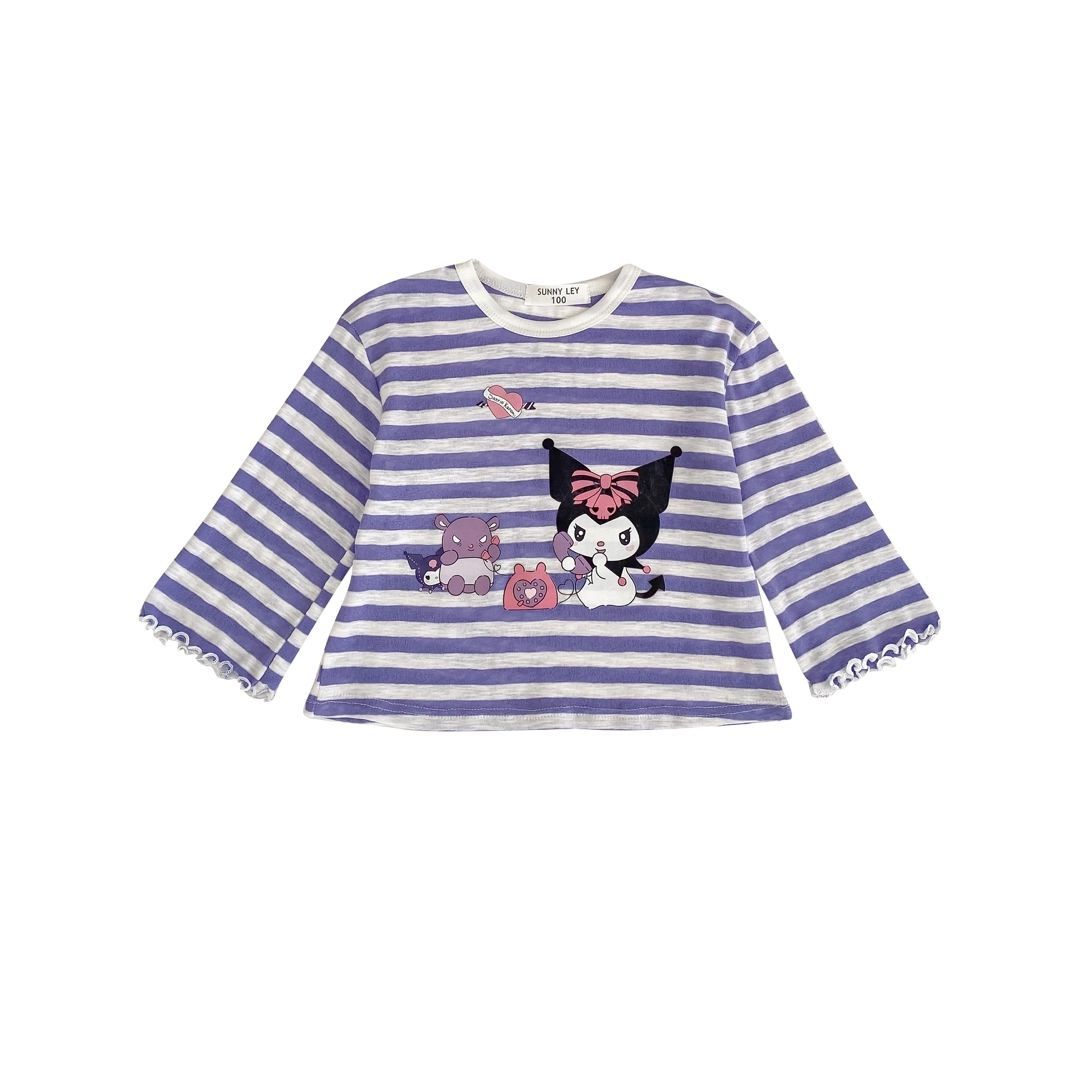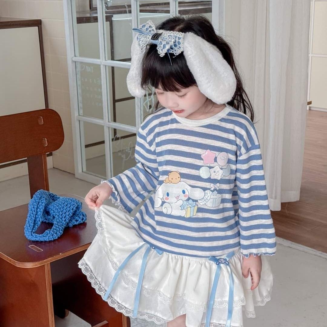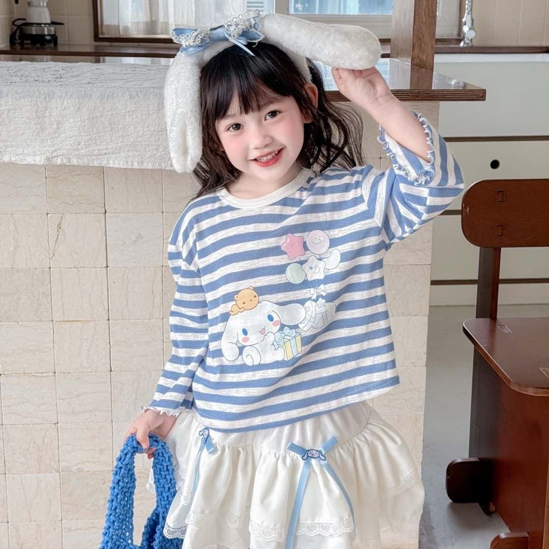 봄과 여름 2025 새로운 소녀 kulomi 달콤한 올 매치 스트라이프 긴 소매 티셔츠 활 Sanrio 푹신한 스커트