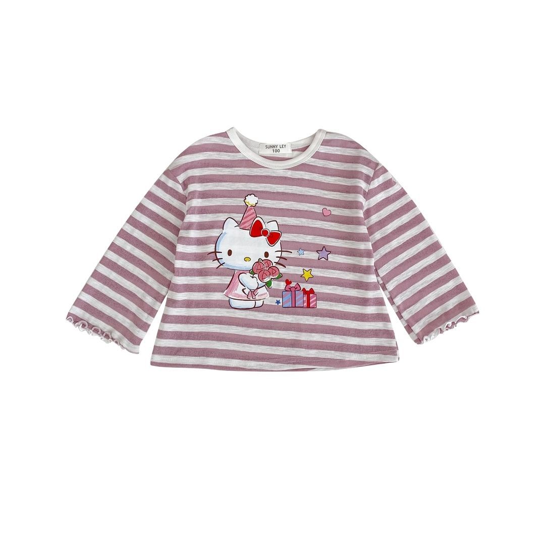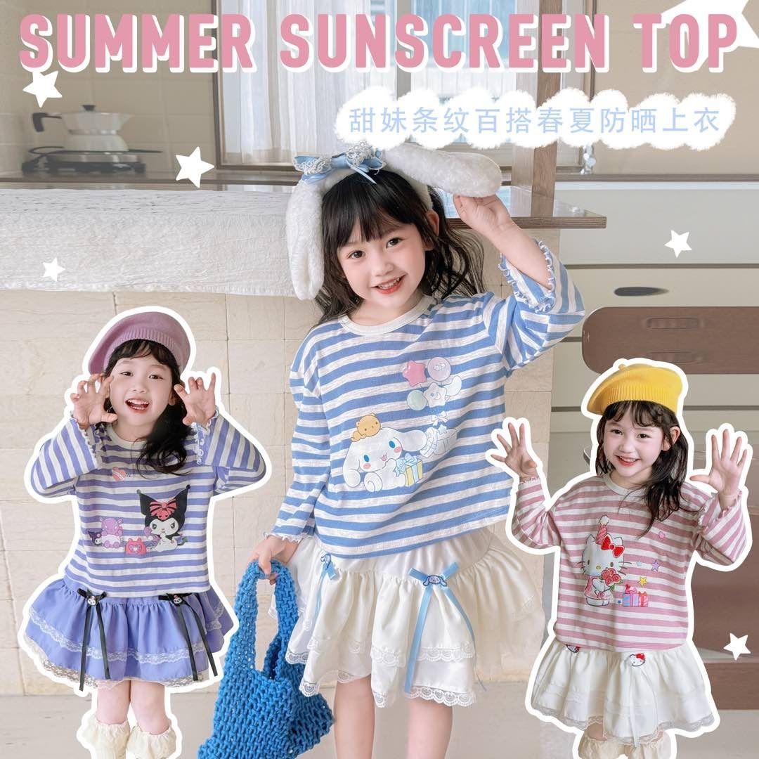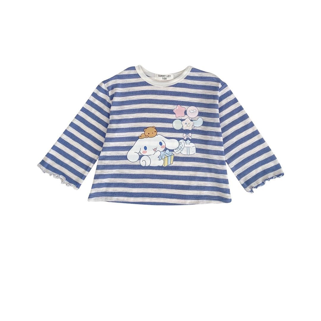 봄과 여름 2025 새로운 소녀 kulomi 달콤한 올 매치 스트라이프 긴 소매 티셔츠 활 Sanrio 푹신한 스커트