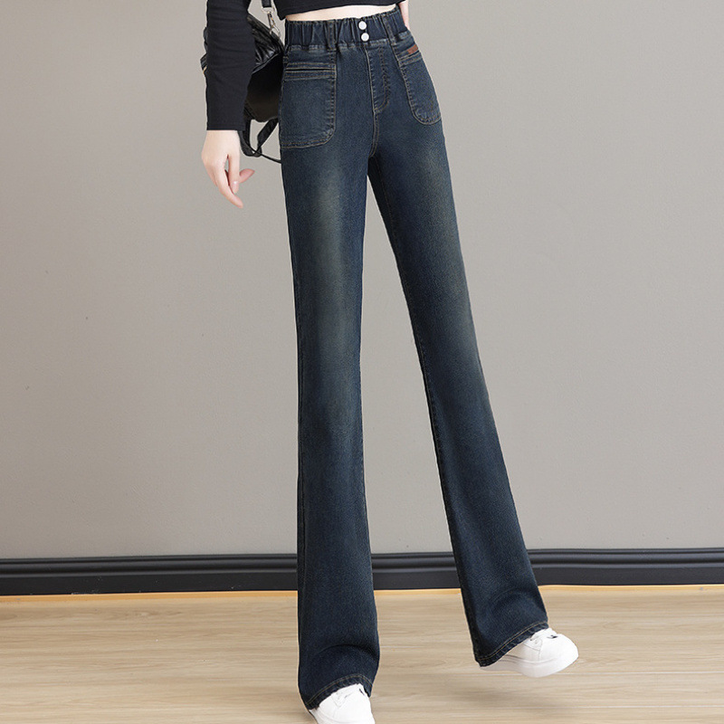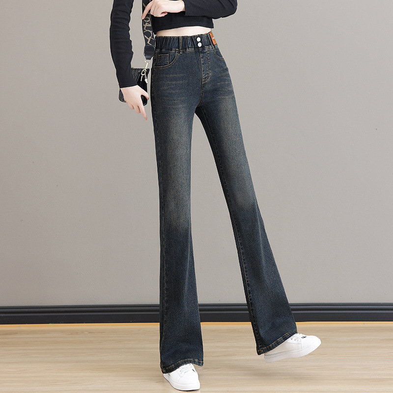 데님 슬립 바지 여자 2025 년 봄과 가을 새로운 도착 유행 올매치 하이 허리 스트레치 슬림 핏 슬리밍 캐주얼 플래 팬츠스토어 가기
