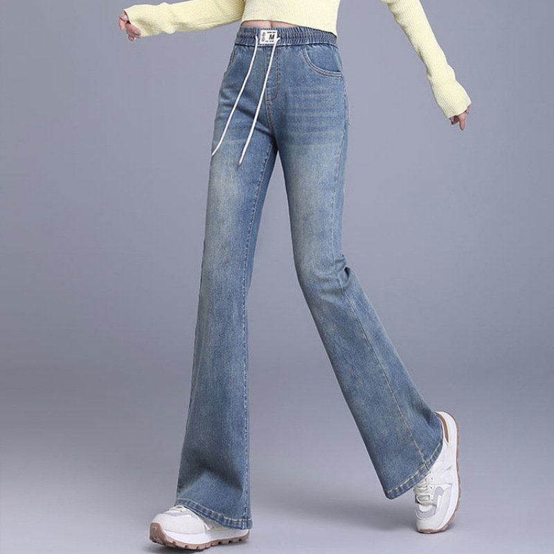 데님 슬립 바지 여자 2025 년 봄과 가을 새로운 도착 유행 올매치 하이 허리 스트레치 슬림 핏 슬리밍 캐주얼 플래 팬츠