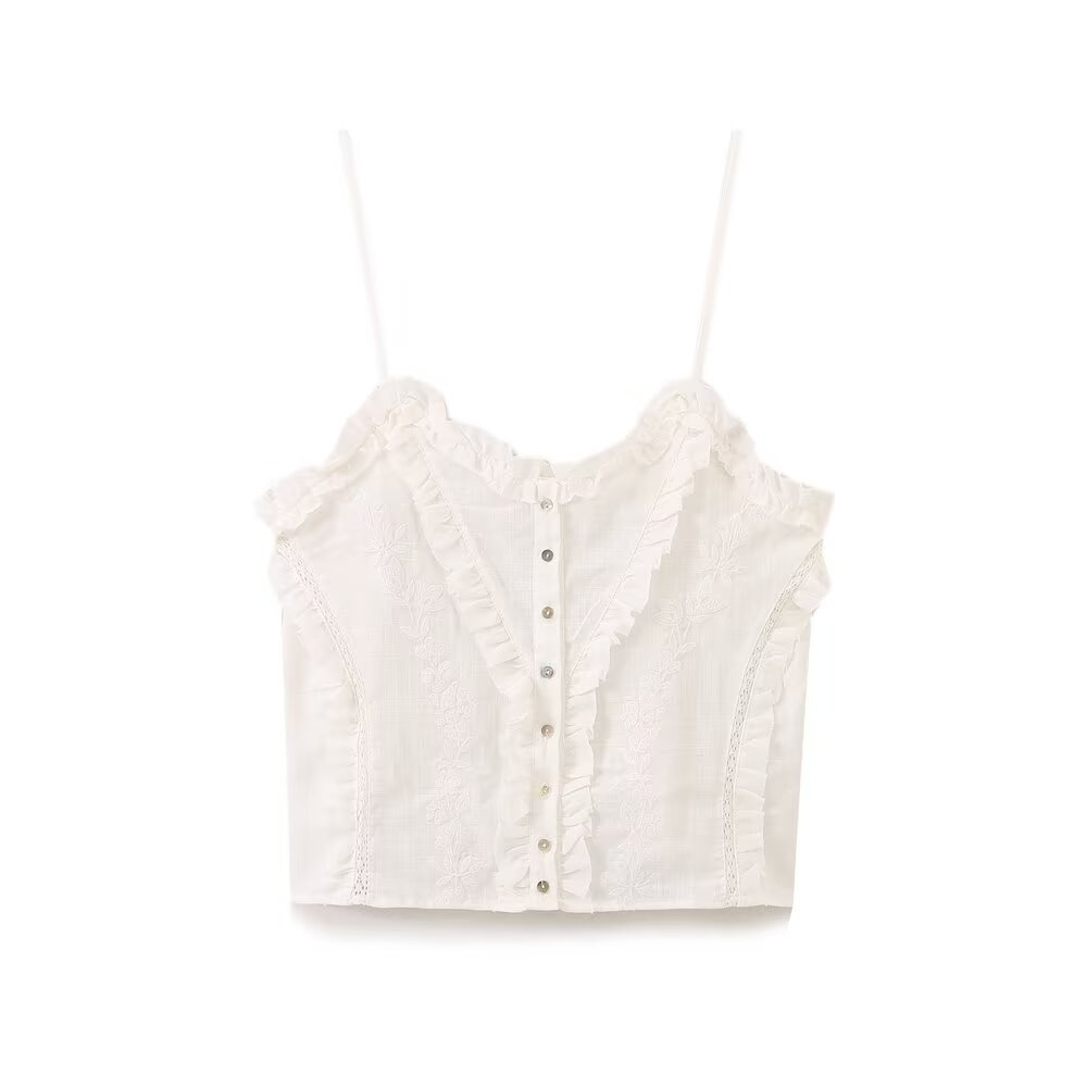 UC & ZA 국경 간 AliExpress 여성용 유럽과 미국 스타일 섹시 백리스 자수 솜털 슬링 탑 0881073
