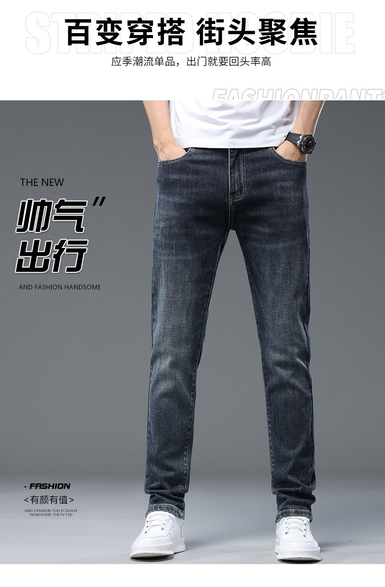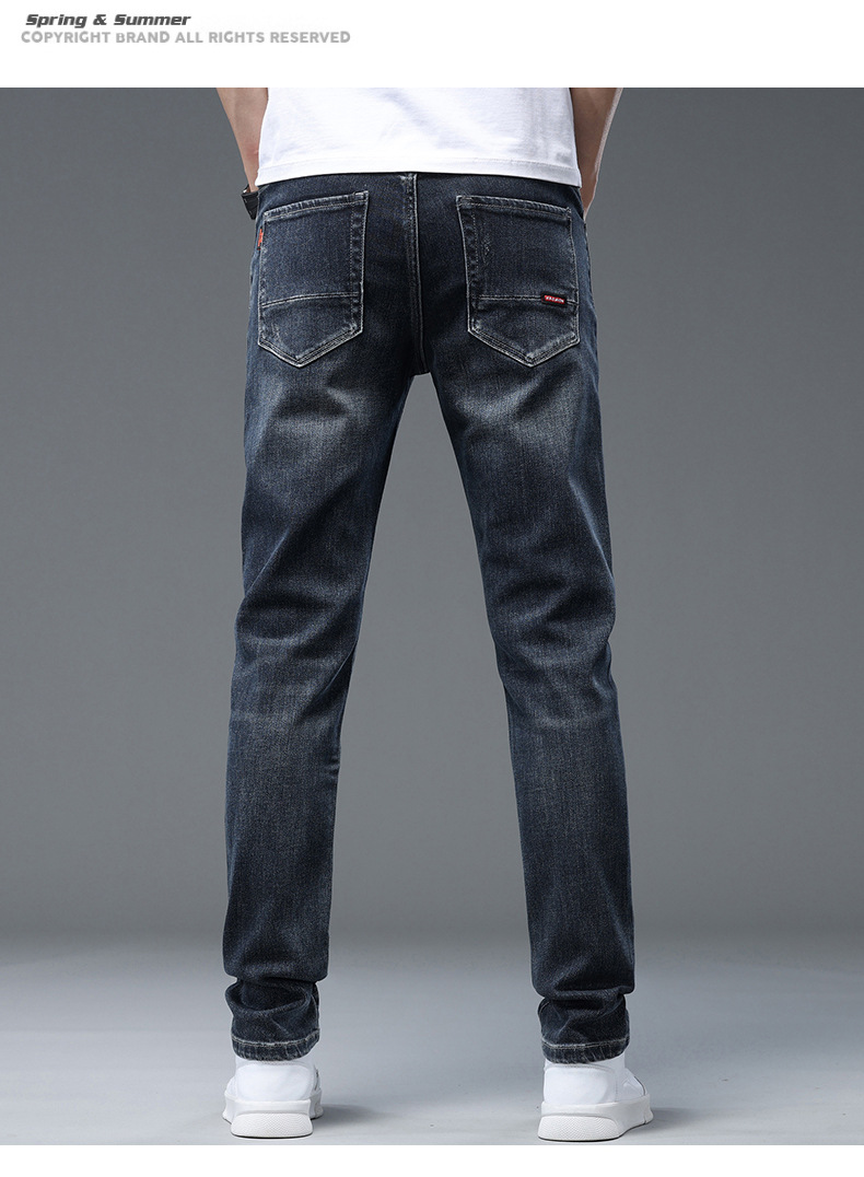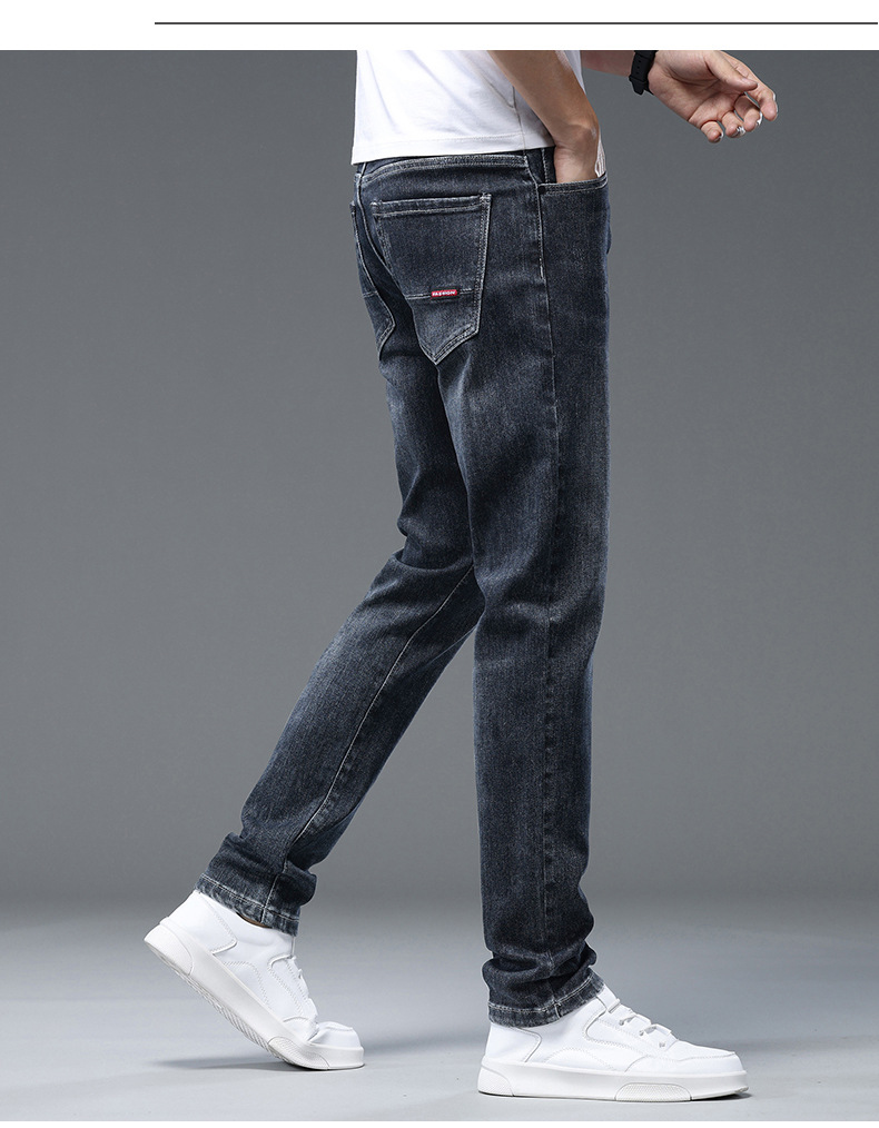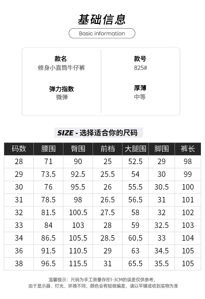 봄과 여름 2025 새로운 도착 젊은 한국 스타일 스트레치 슬림 핏 작은 다리 남성 청바지 남성 패션 825스토어 가기