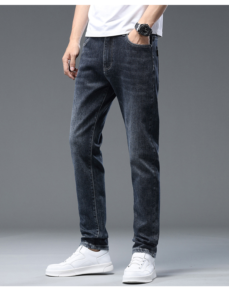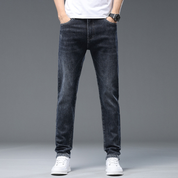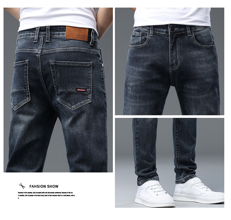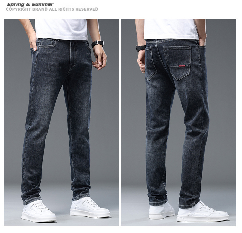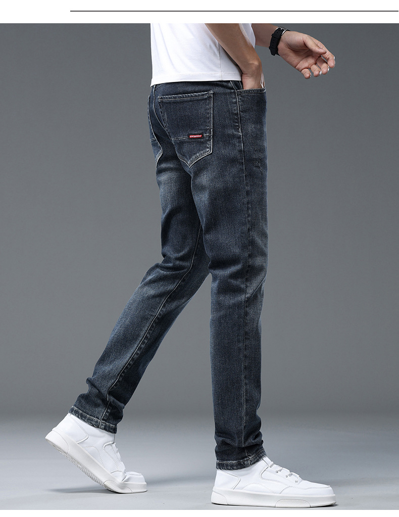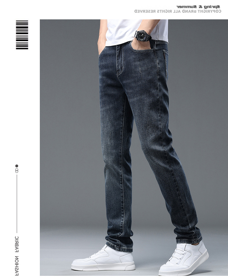 봄과 여름 2025 새로운 도착 젊은 한국 스타일 스트레치 슬림 핏 작은 다리 남성 청바지 남성 패션 825스토어 가기