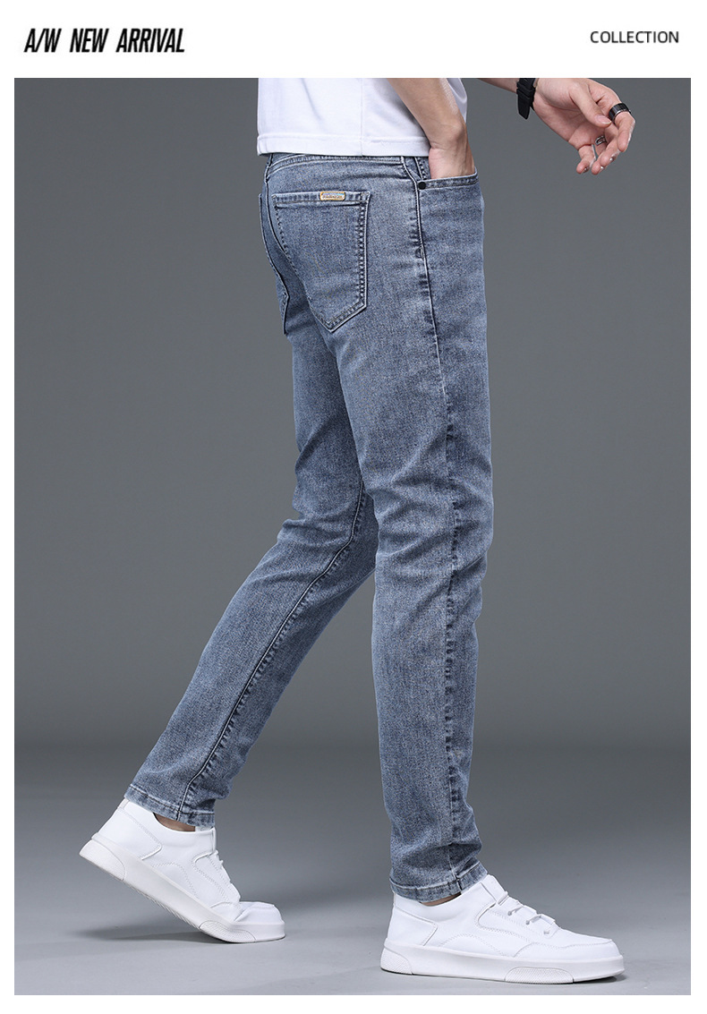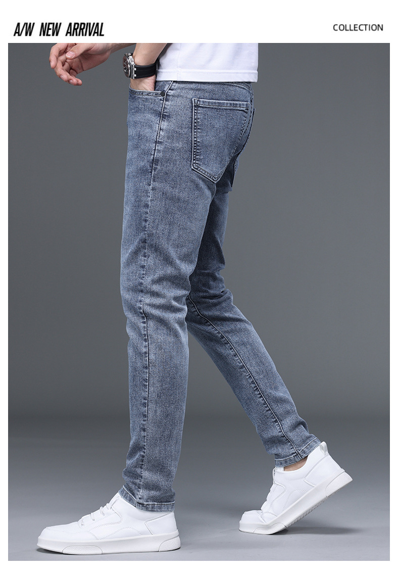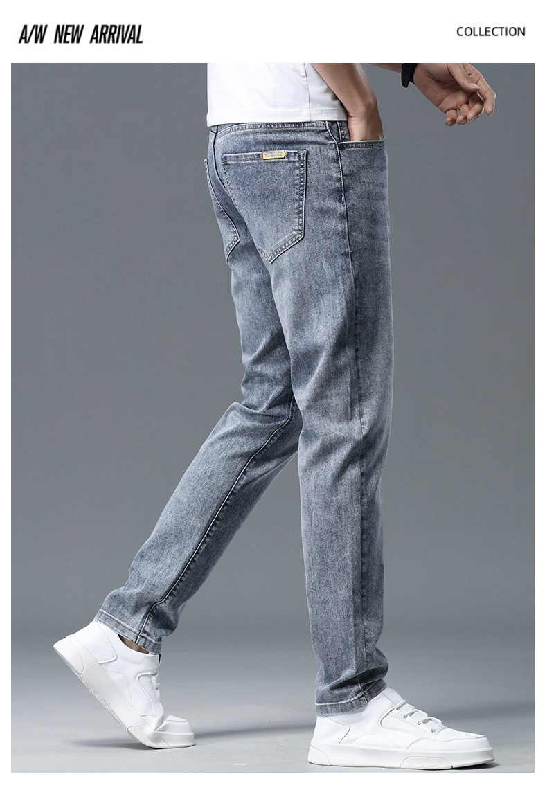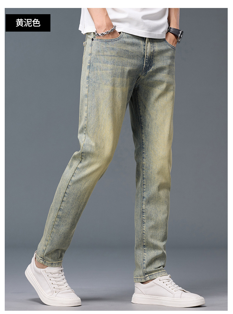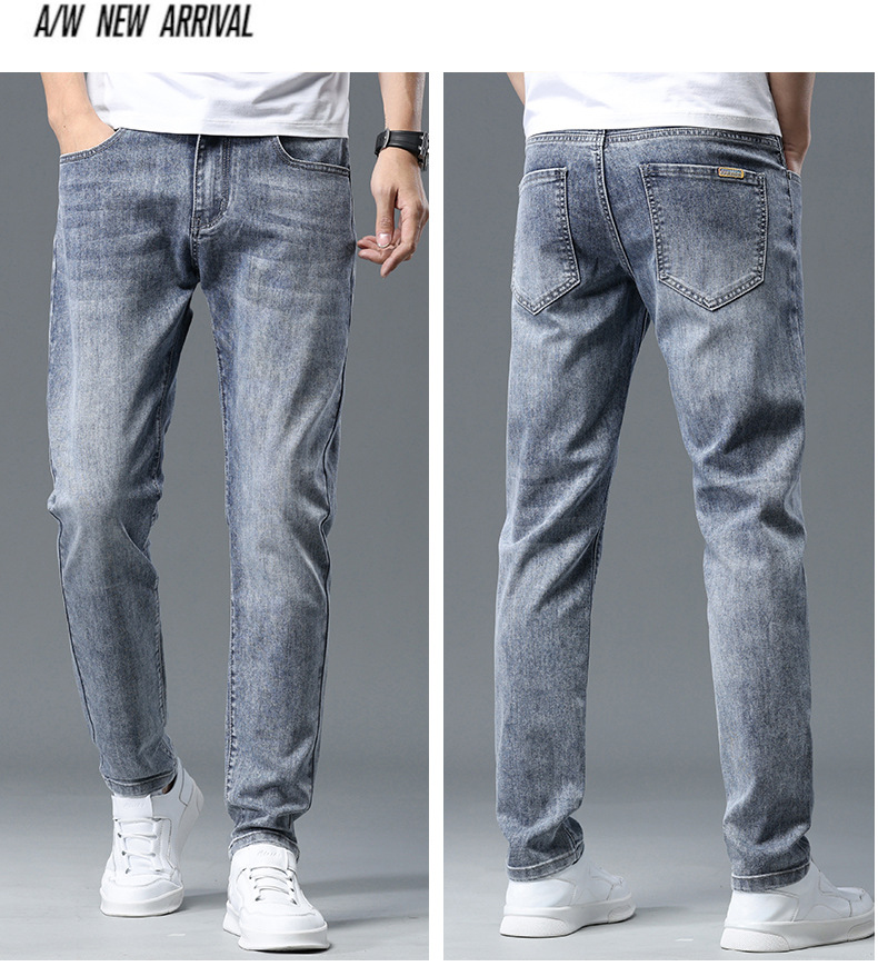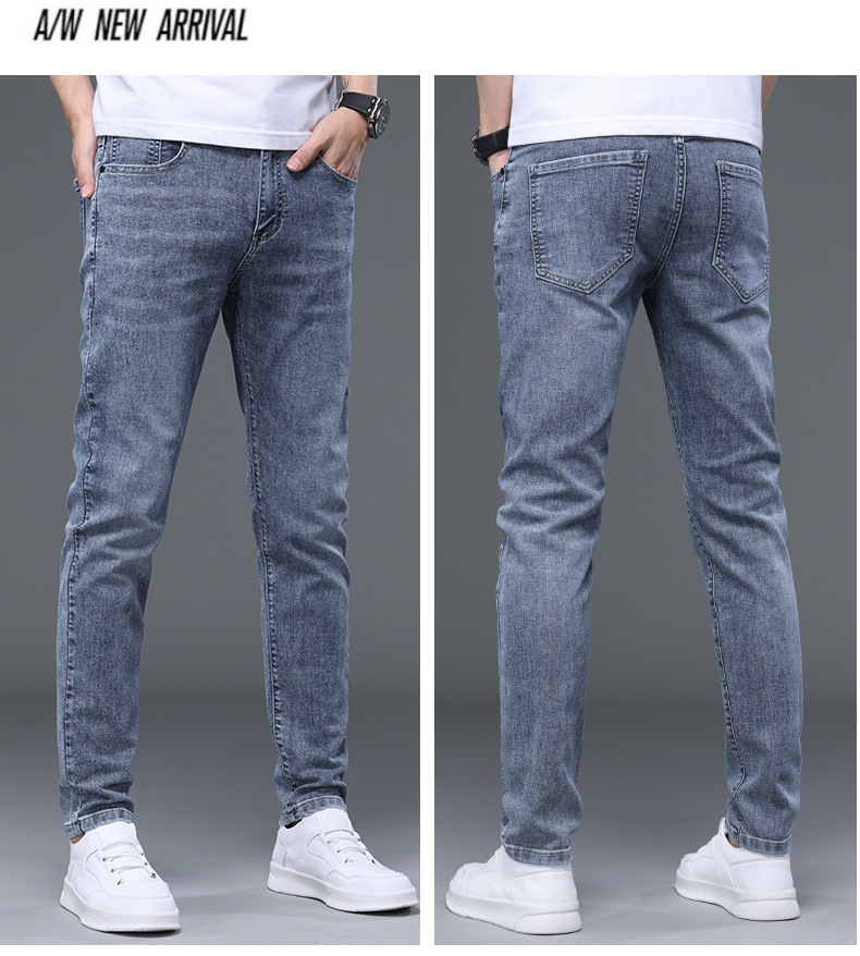봄과 여름 2025 새로운 스트레치 슬림 핏 한국 스타일 남성 청바지 남성 캐주얼 유행 유행 바지 833스토어 가기