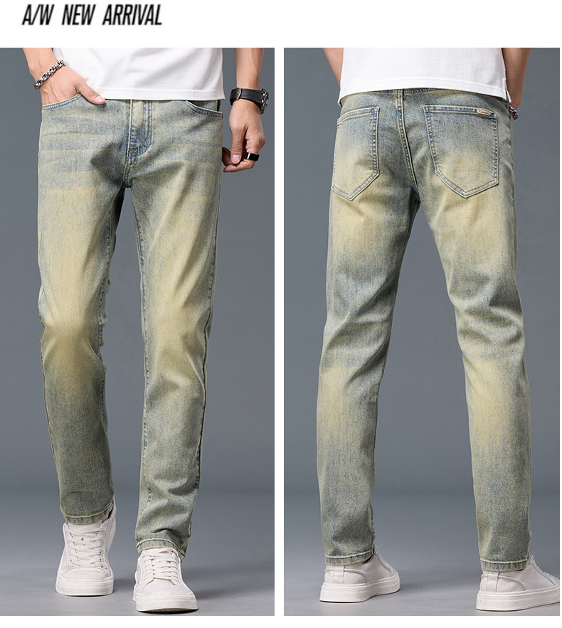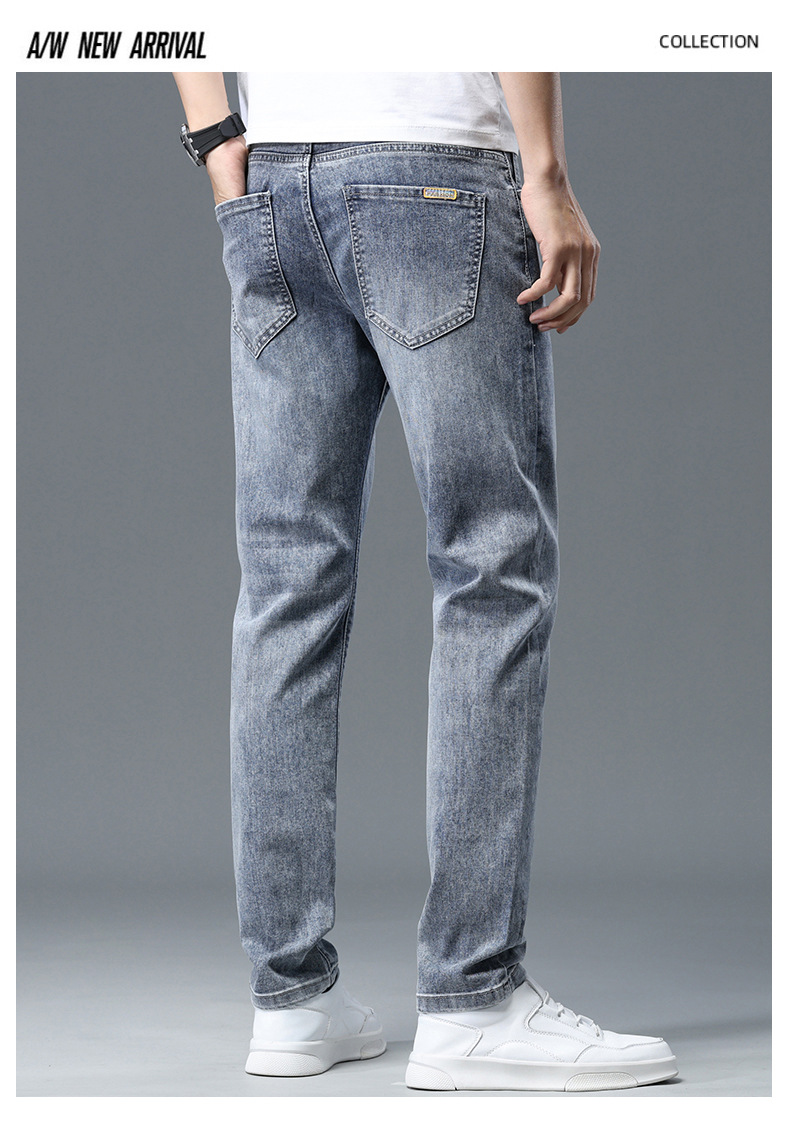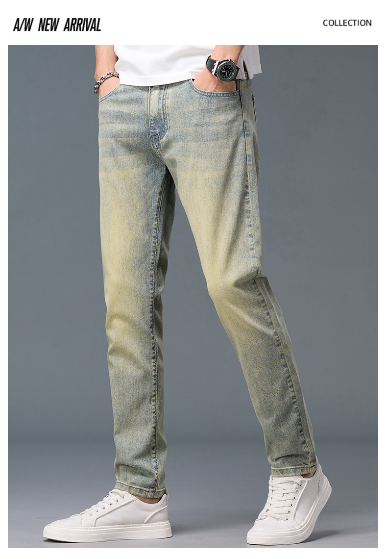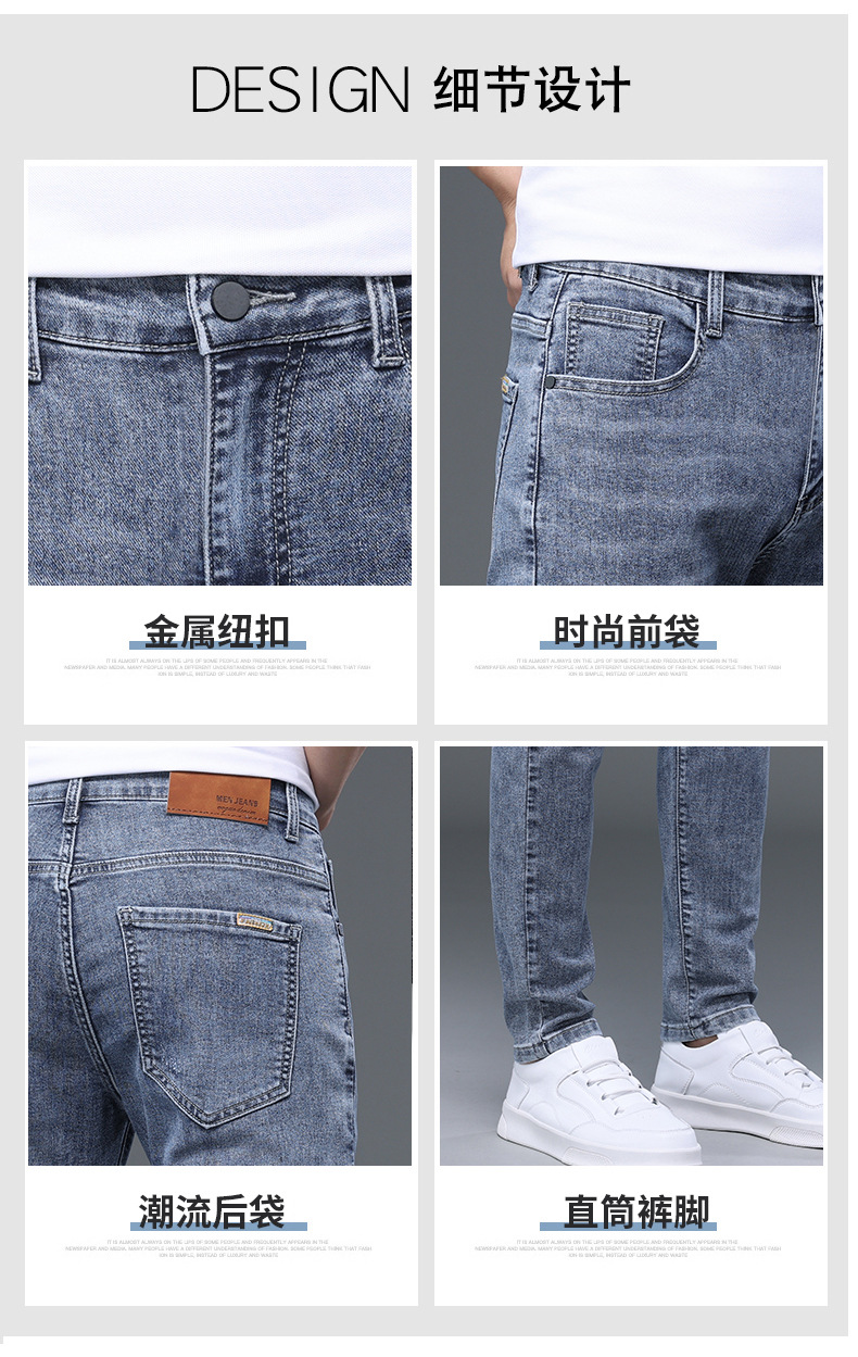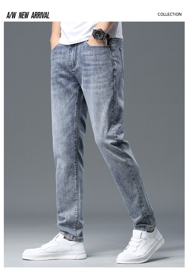 봄과 여름 2025 새로운 스트레치 슬림 핏 한국 스타일 남성 청바지 남성 캐주얼 유행 유행 바지 833스토어 가기