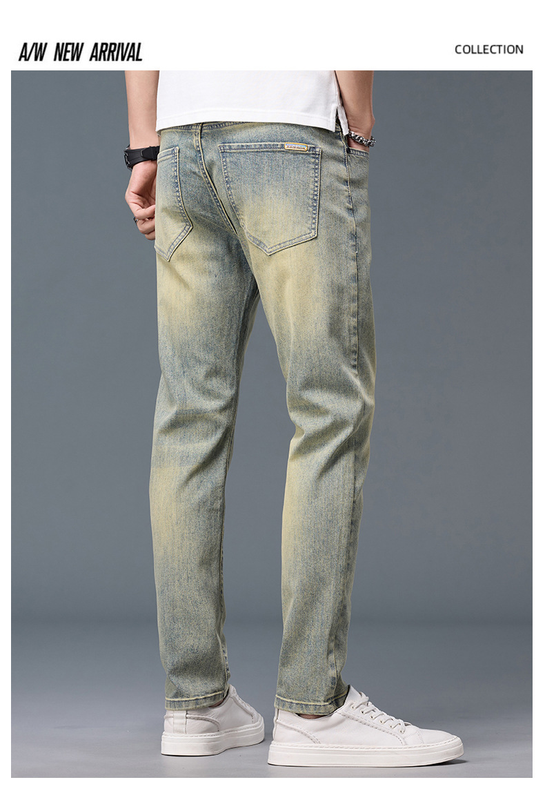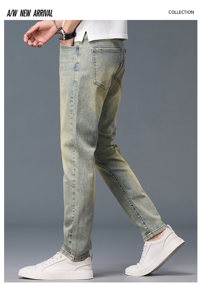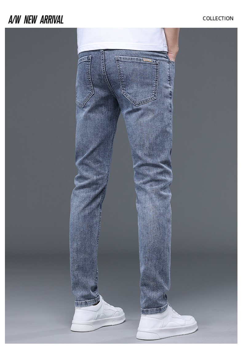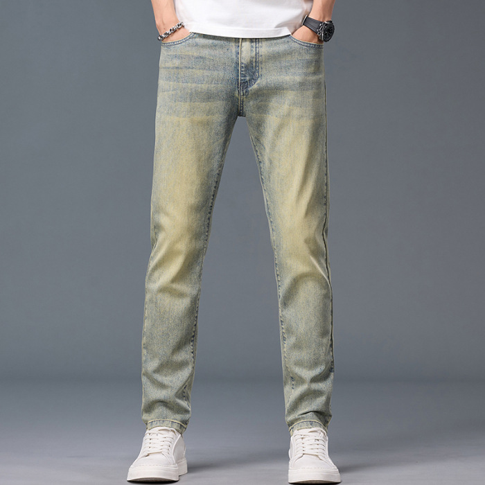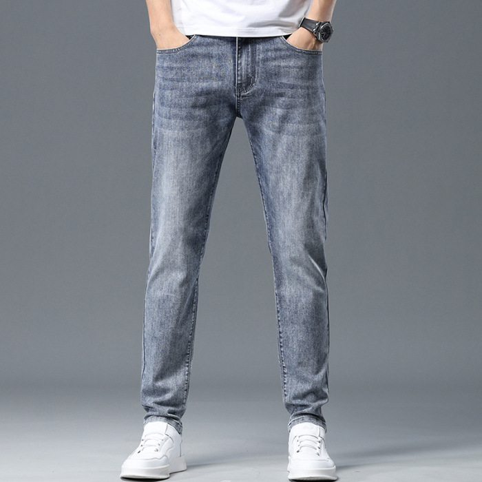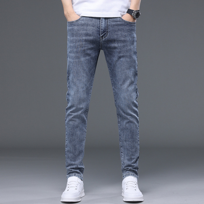봄과 여름 2025 새로운 스트레치 슬림 핏 한국 스타일 남성 청바지 남성 캐주얼 유행 유행 바지 833