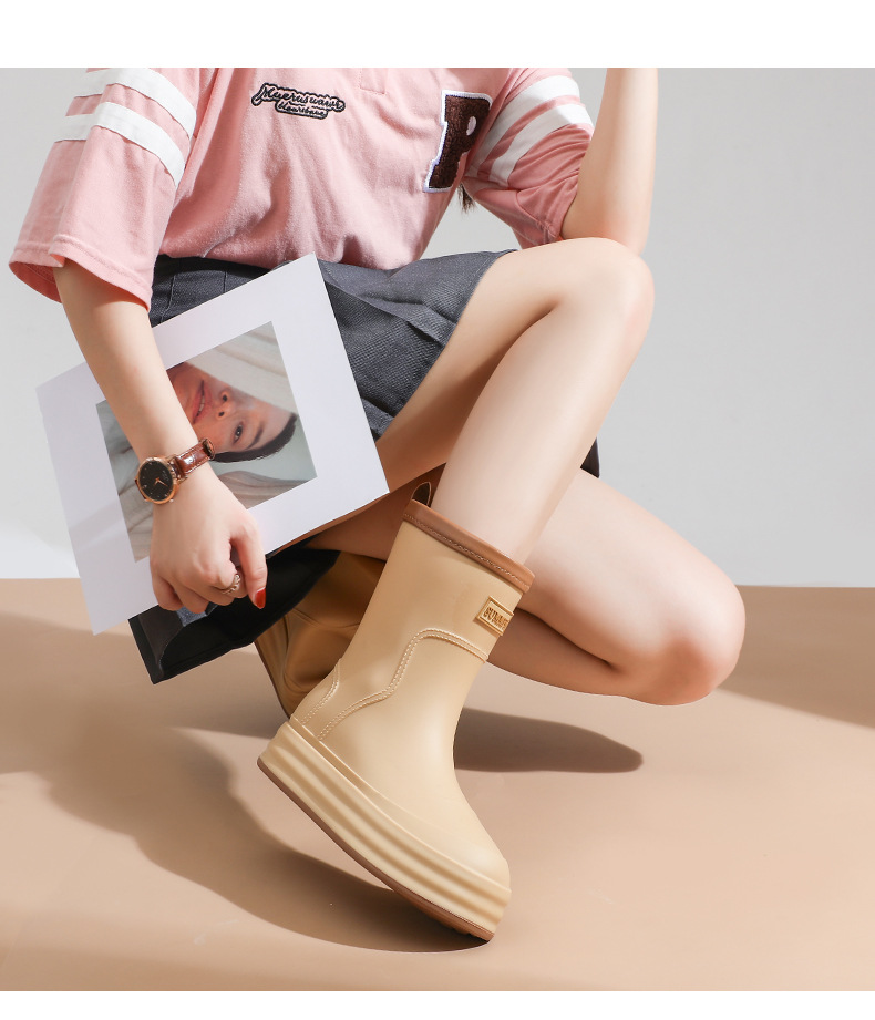 비 부츠 여성의 두꺼운 밑창 유행 한국식 짧은 튜브 큰 머리 부츠 사계절 야외 인터넷-유명한 야외 착용 미끄럼 방지 방수 장화
