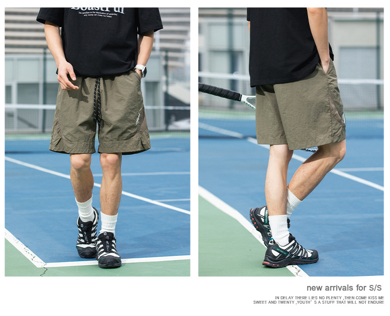 통기성 메쉬 야외 캐주얼 반바지 남자 여름 분할 스티칭 유행 브랜드 편지 자수 스포츠 바지스토어 가기