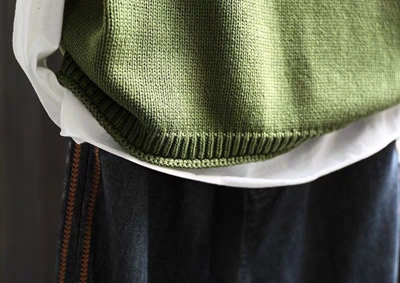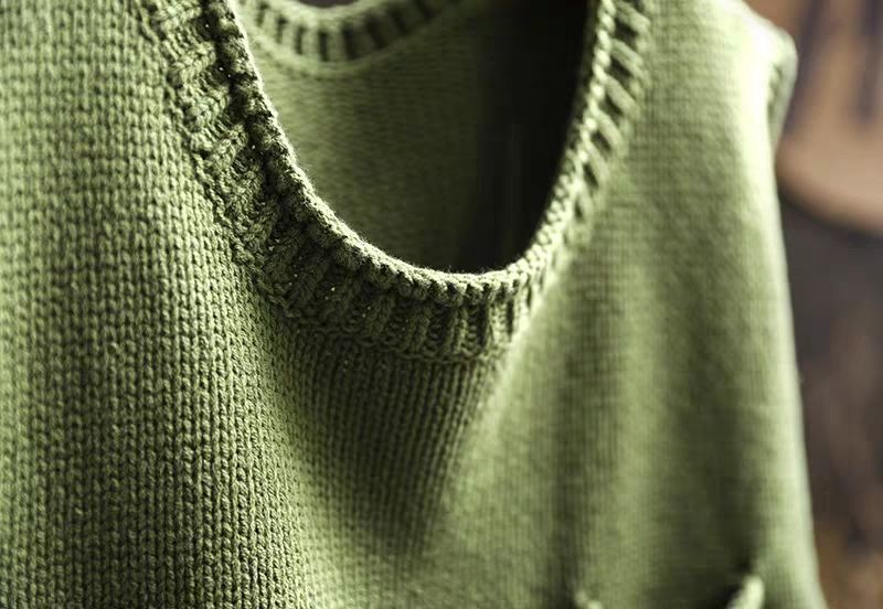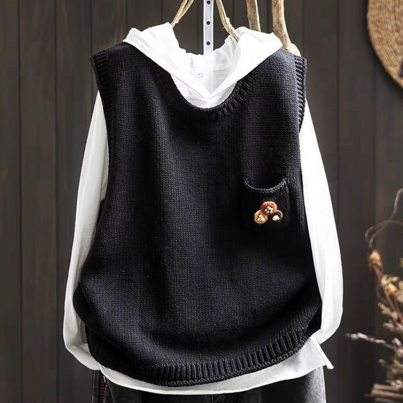 포켓 핸드 메이드 플라워 코튼 니트 조끼 여성 느슨한 봄 예술적 캐주얼 풀오버 민소매 코트스토어 가기