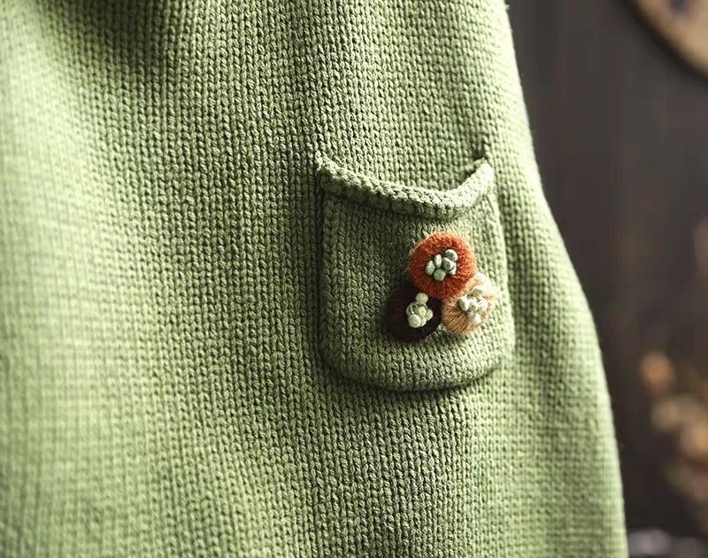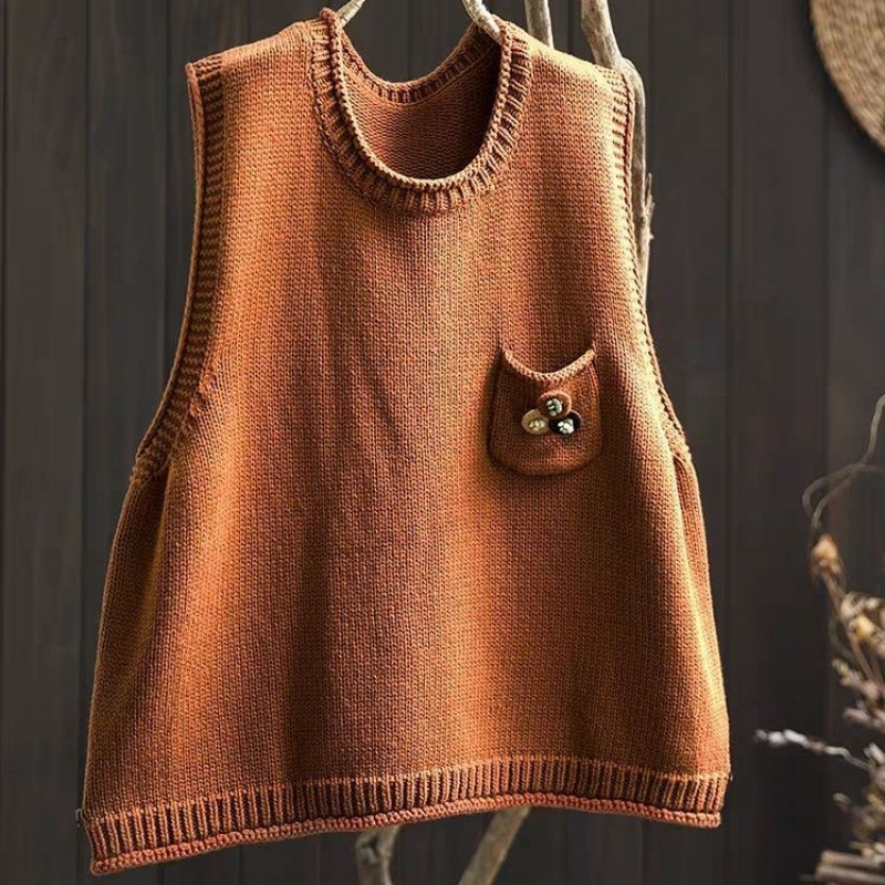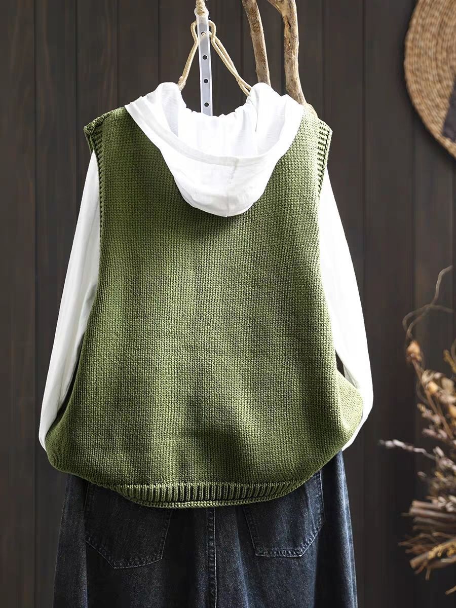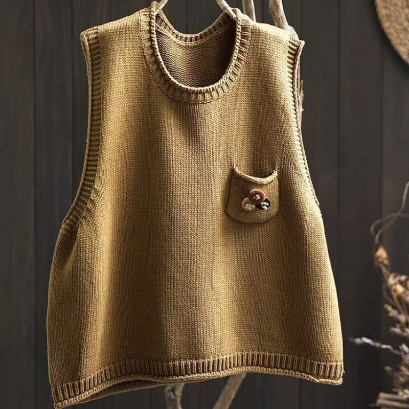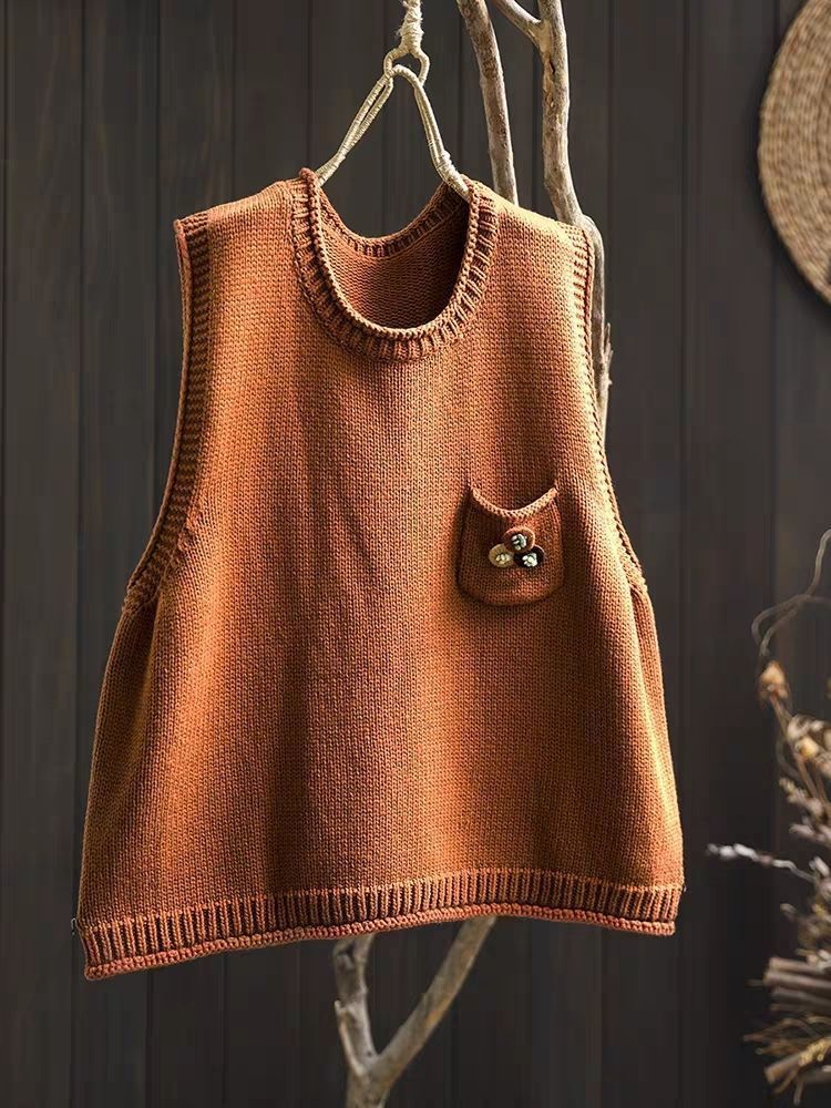 포켓 핸드 메이드 플라워 코튼 니트 조끼 여성 느슨한 봄 예술적 캐주얼 풀오버 민소매 코트