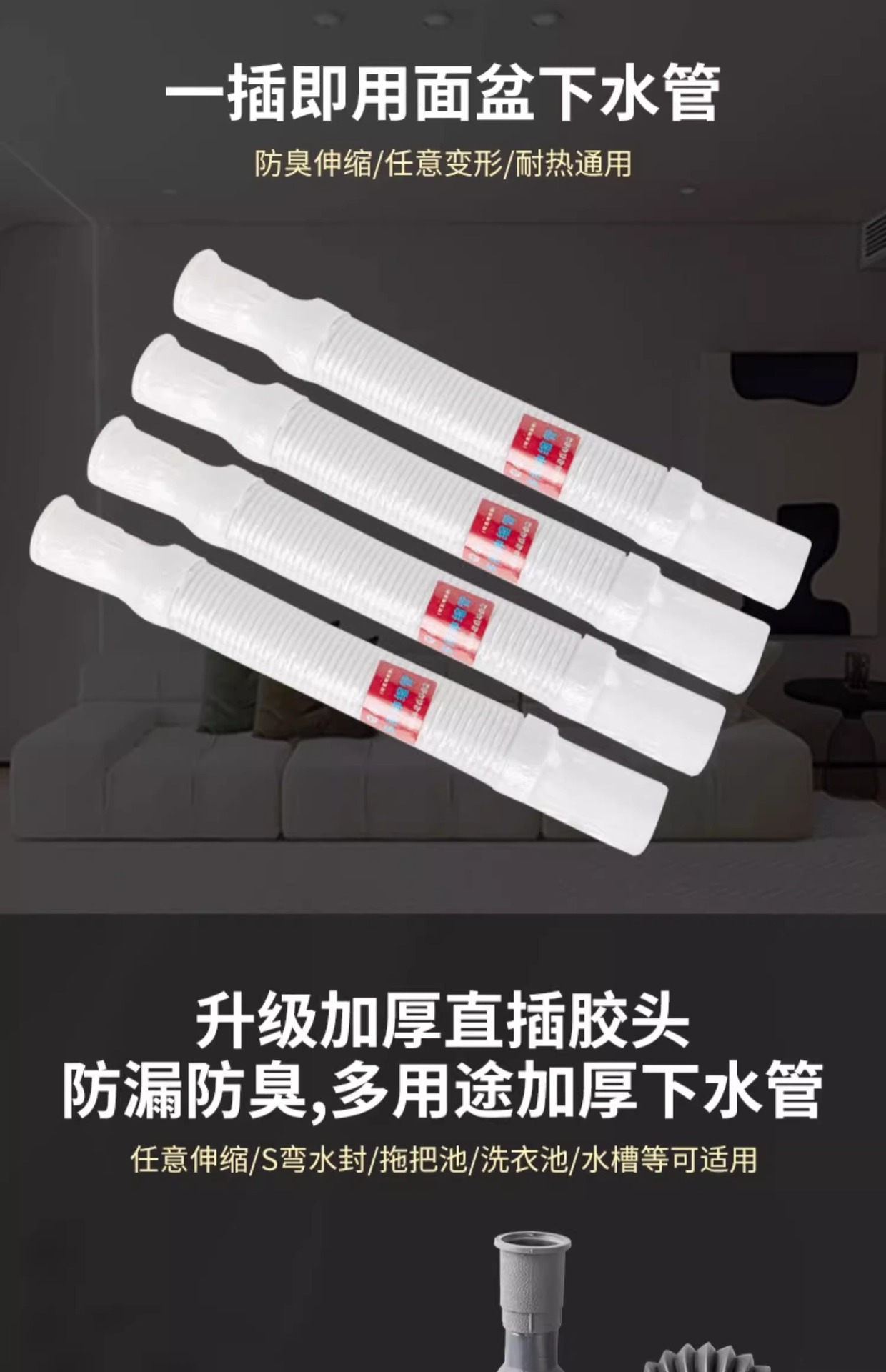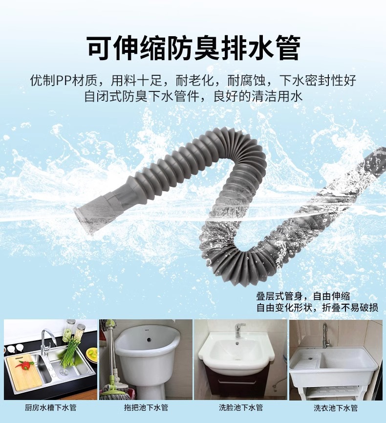 분지 식물성 분지 탑 풀 워시 분지 배수 파이프 텔레스코픽 플라스틱 라인 호스 두꺼운 부식 방지 탈취제 배수 파이프