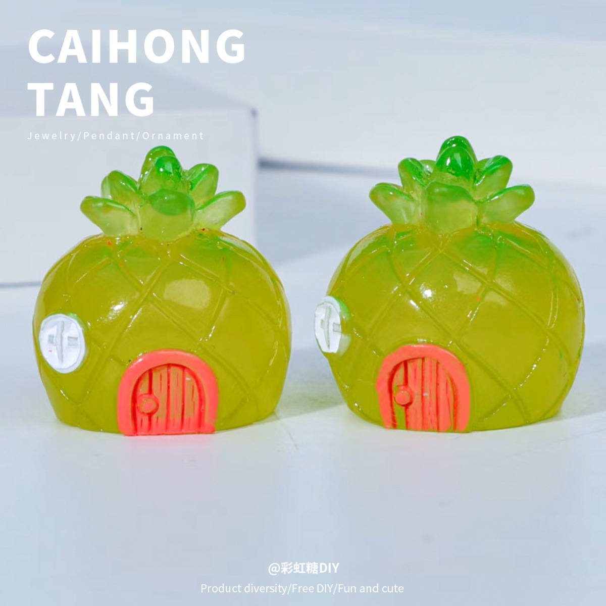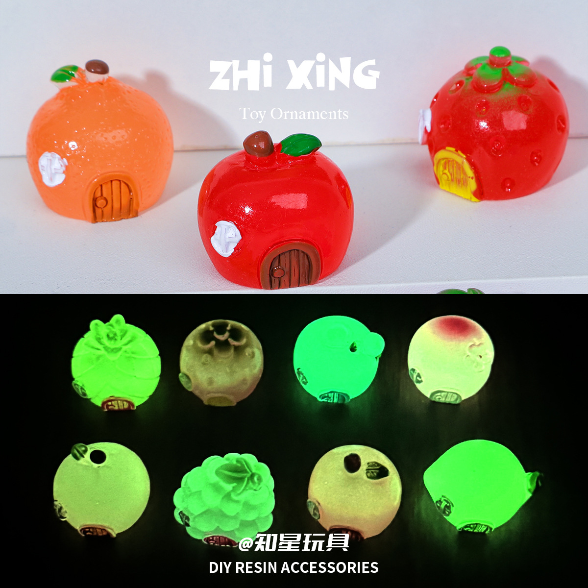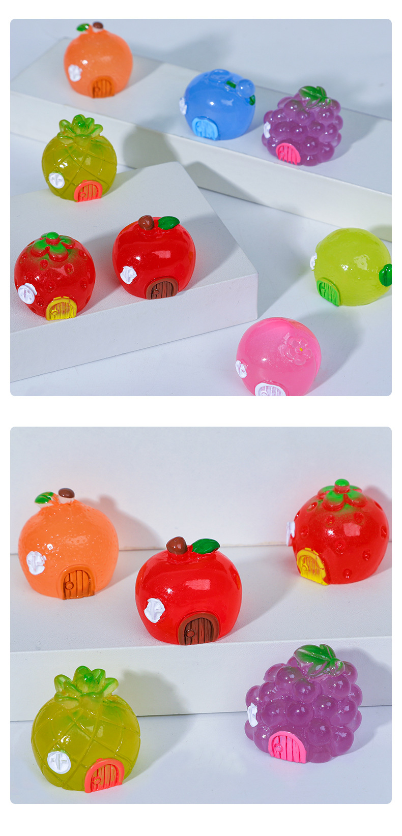 스테레오 수지 빛나는 과일 오두막 스테레오 인형 풍경 장식품 플레이 하우스 DIY 액세서리를위한 휴대 전화 쉘