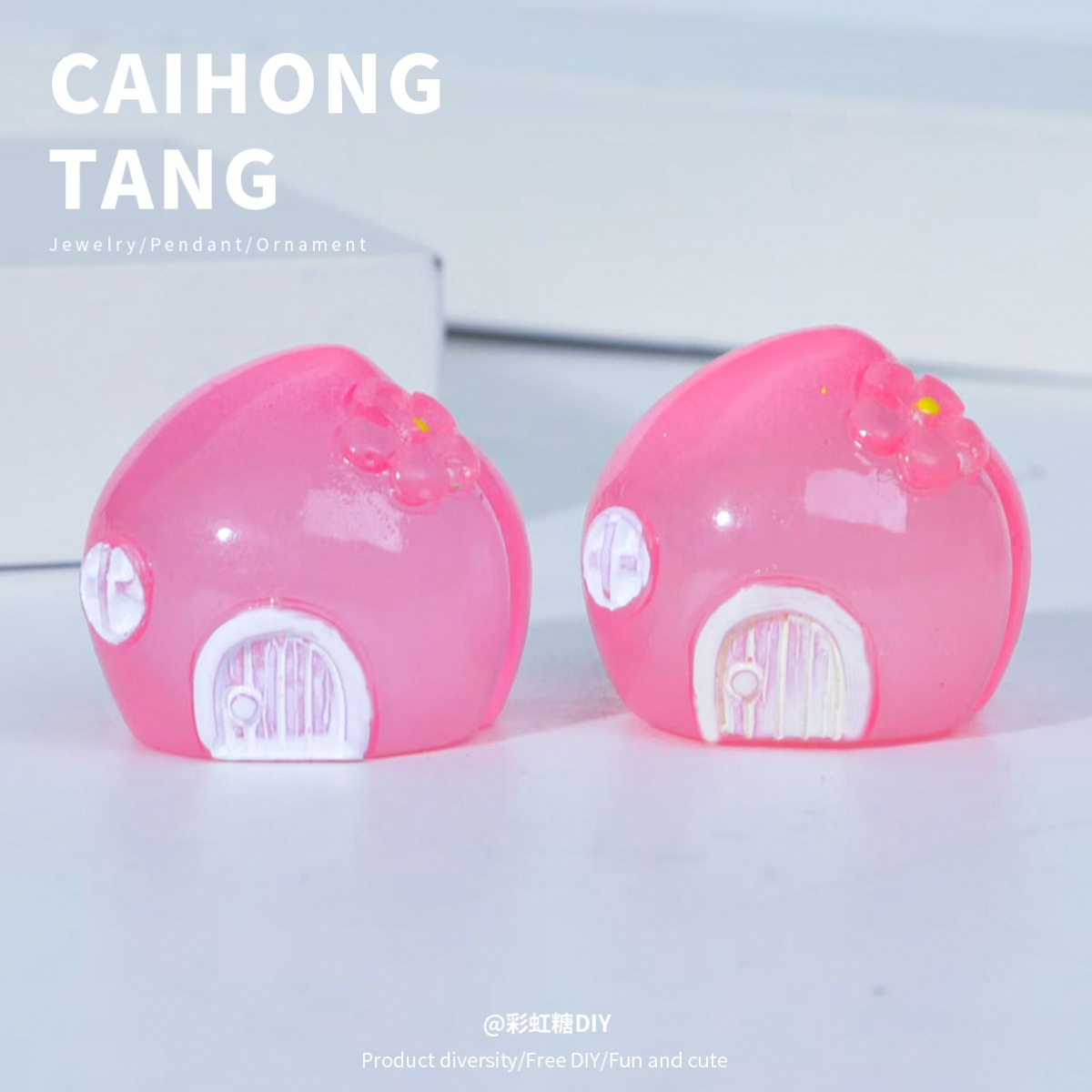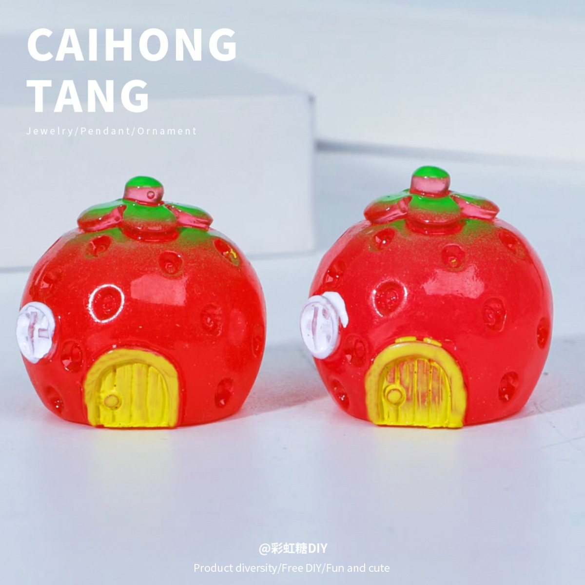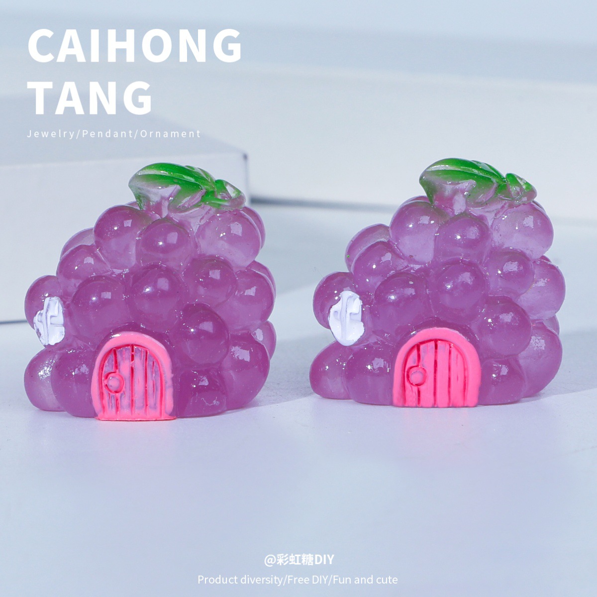 스테레오 수지 빛나는 과일 오두막 스테레오 인형 풍경 장식품 플레이 하우스 DIY 액세서리를위한 휴대 전화 쉘