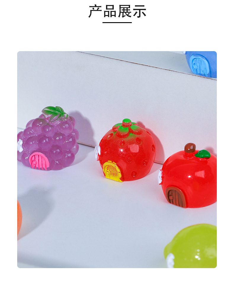 스테레오 수지 빛나는 과일 오두막 스테레오 인형 풍경 장식품 플레이 하우스 DIY 액세서리를위한 휴대 전화 쉘스토어 가기