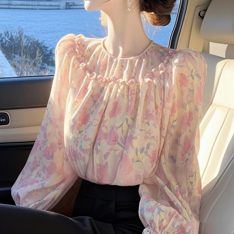 2025 봄 새로운 프랑스 스타일 아름다운 최고급 조명 럭셔리 슈퍼 좋은 독특한 아름다운 핑크 꽃 셔츠