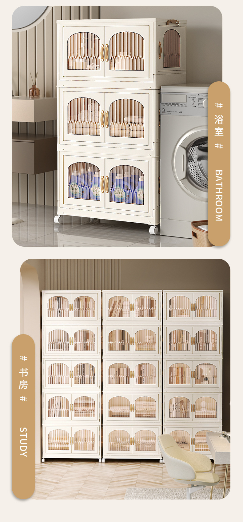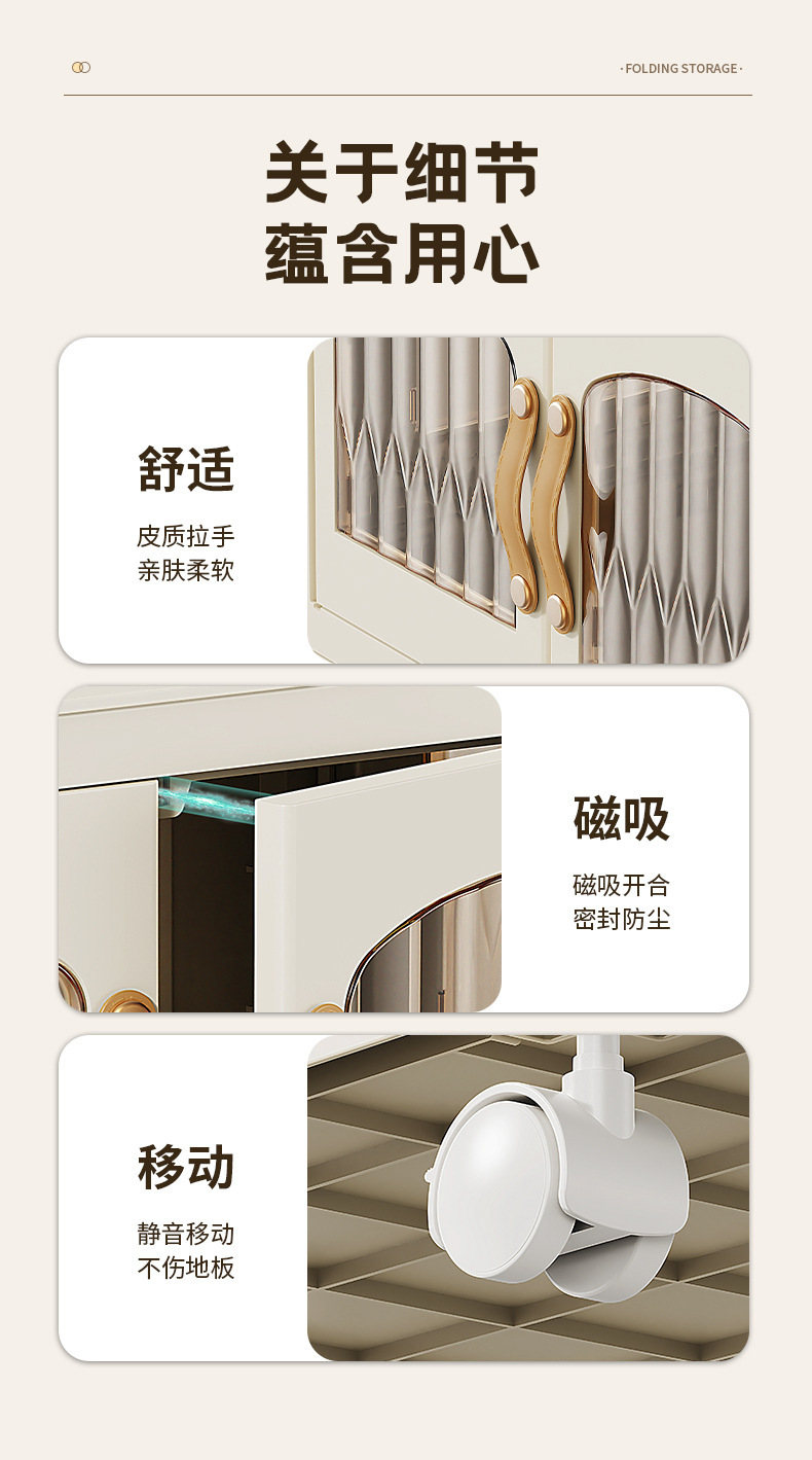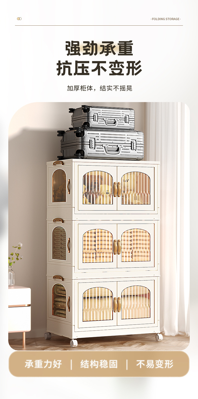 가구 투명한 침실 풀리 통합 접는 4 개의 문 방진 및 방습 보관 캐비닛 옷 스낵 보관 상자스토어 가기