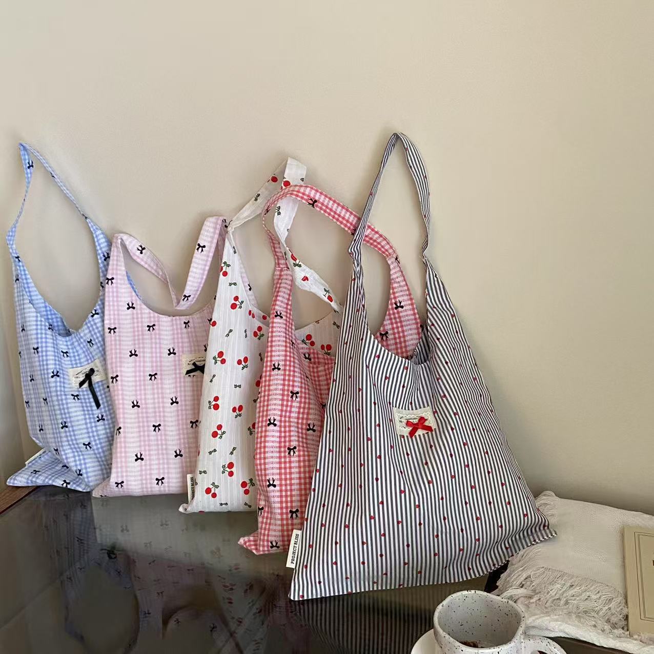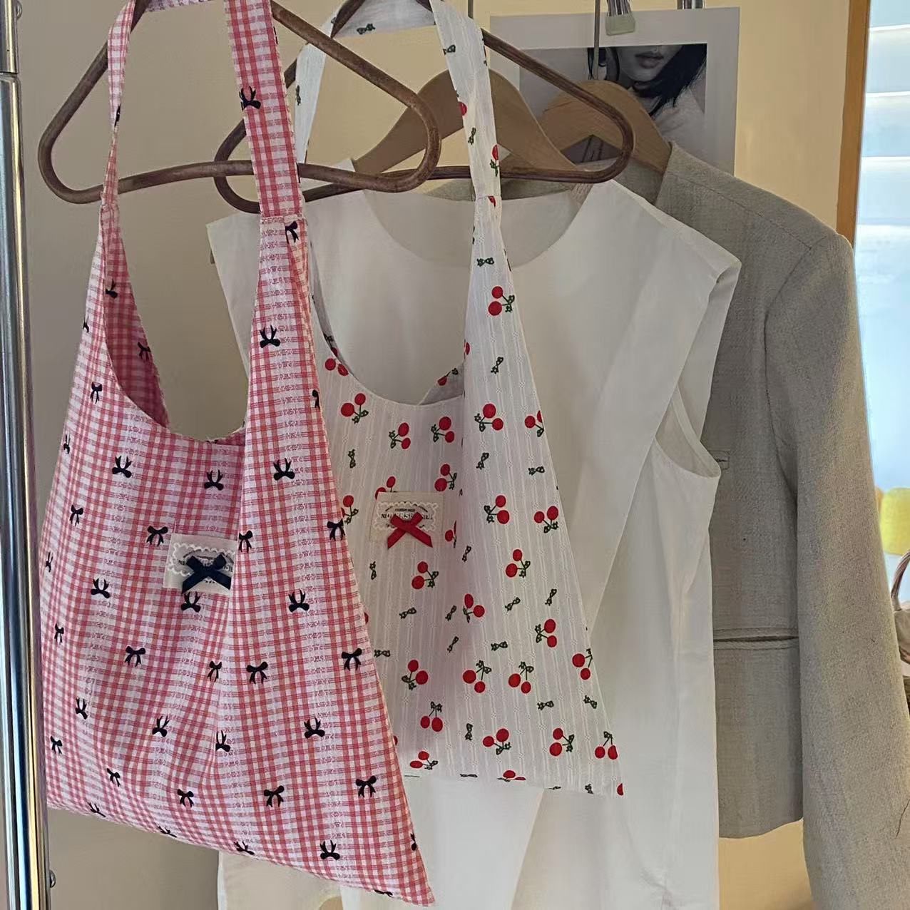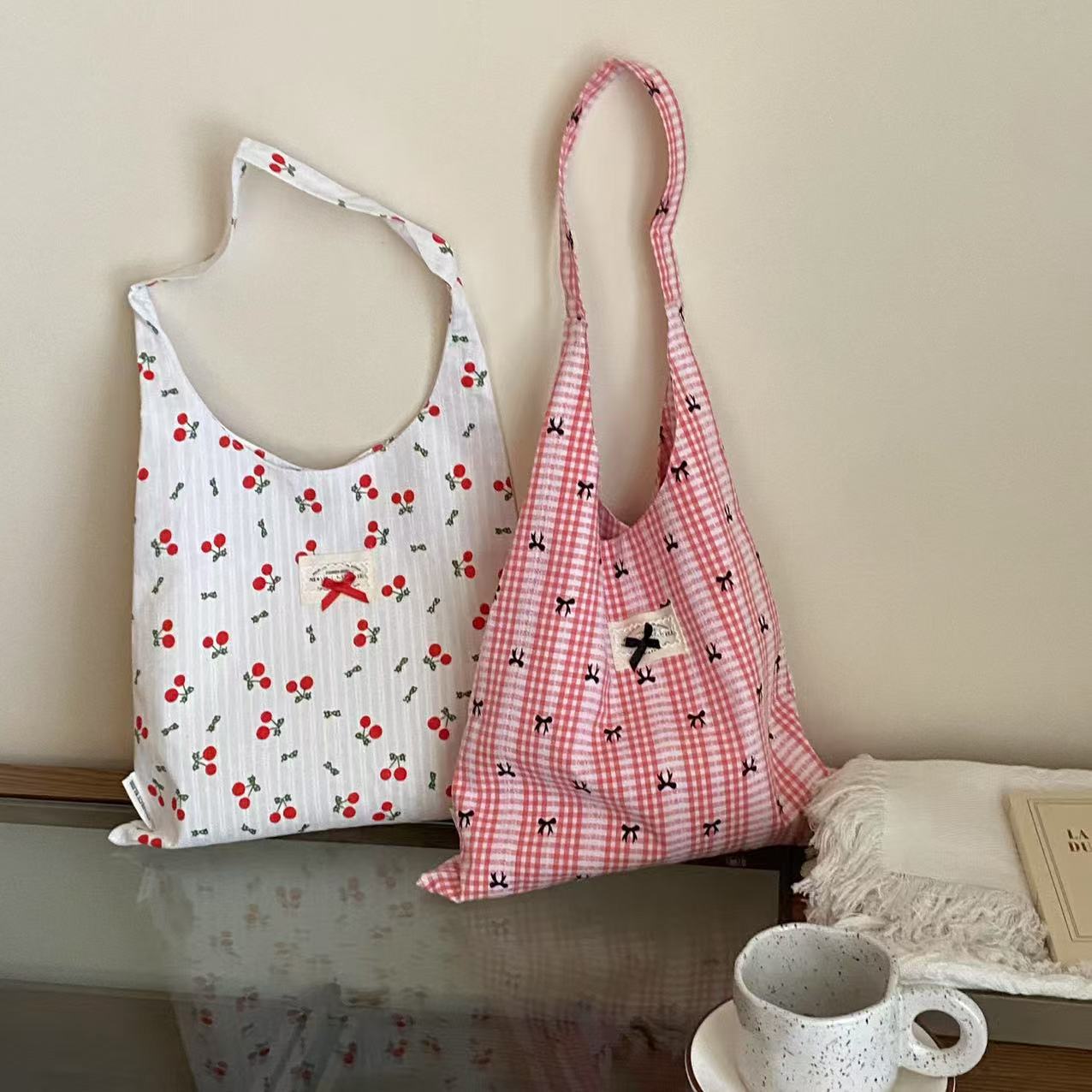 2025 새로운 한국 스타일 간단한 인쇄 된 활 캔버스 가방 어깨 가방 여성 쇼핑백 어깨 가방스토어 가기