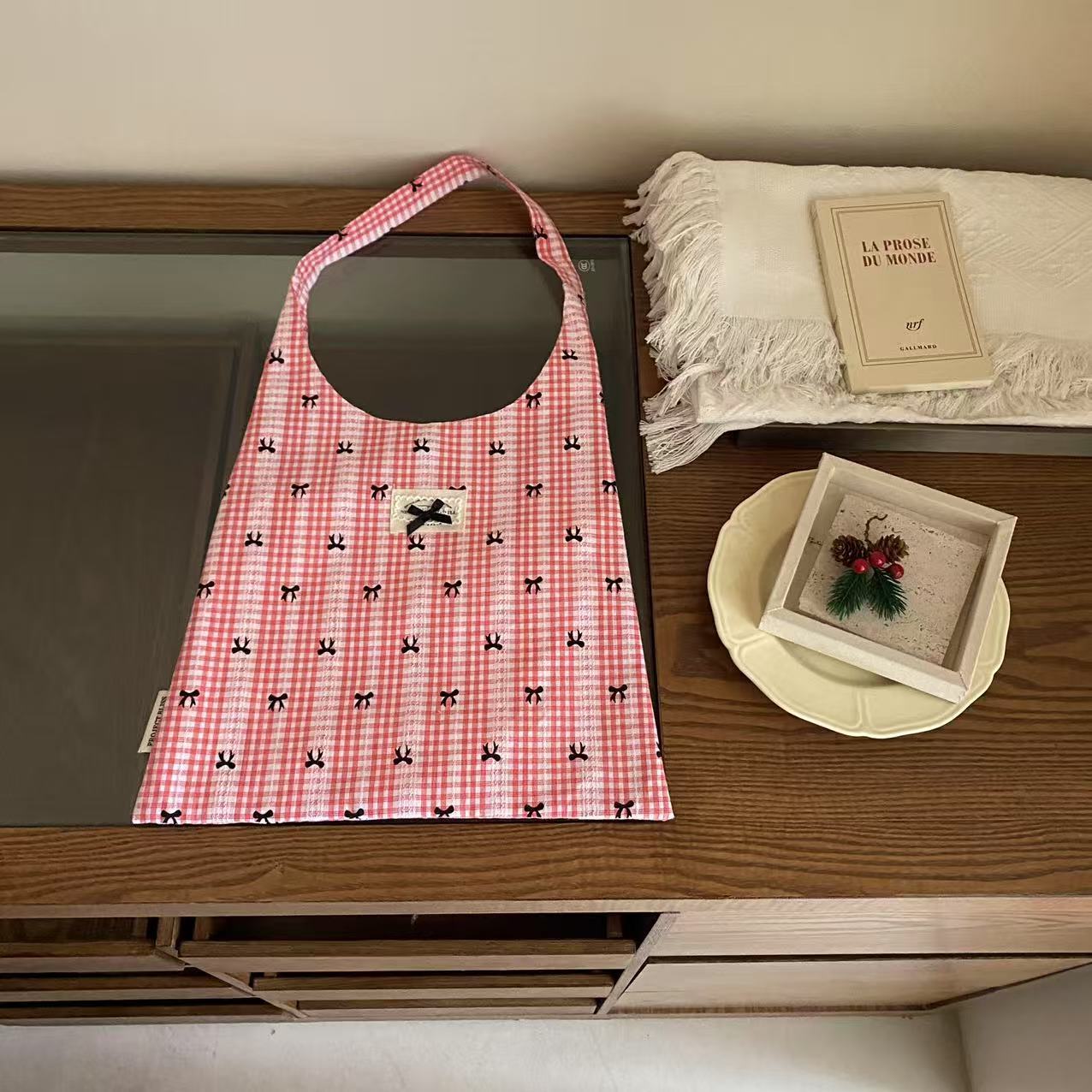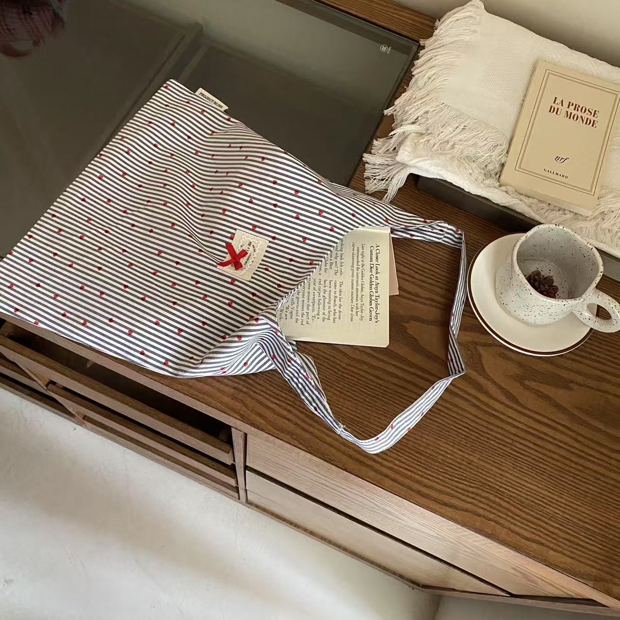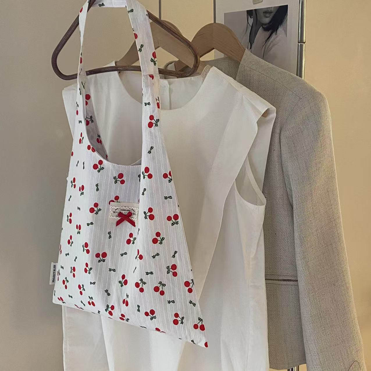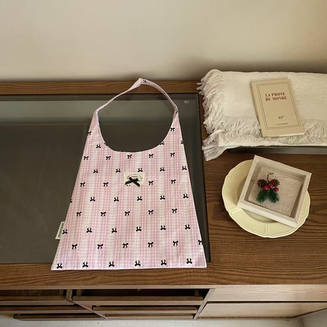 2025 새로운 한국 스타일 간단한 인쇄 된 활 캔버스 가방 어깨 가방 여성 쇼핑백 어깨 가방스토어 가기