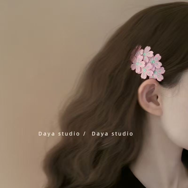 얕은 봄 벚꽃 가리 프렌치 빈티지 자수 꽃 헤어핀 브레이킹 클립 사이드 뱅 클립 쥬얼리