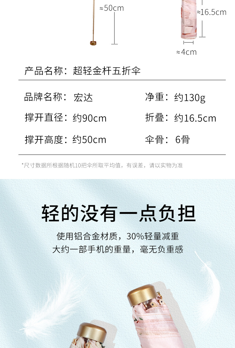 Hongda 우산 초경량 50% off 우산 태양 보호 UV 우산 미니 포켓 우산 비 또는 빛 우산스토어 가기